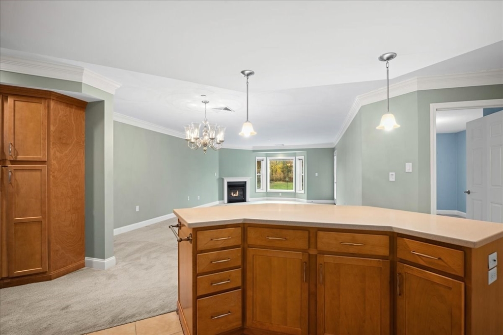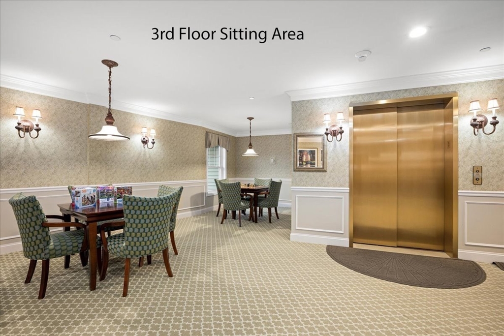 PHEASANT HILL 55+ Adult Community on 12 acres of lovely, bucolic wonderland*Beautiful morning sun floods your home & warms your private covered porch*An Elegant and elevated paradise all reached from your elevator from the lovely, welcoming entry Foyer or from your private garage*OPEN FLOW living*Warm wood Kitchen with island with generous seating is the heart of the home w/built-in pantry and plenty of cabinets & counters for all of your cooking needs opens to generous Dining Room/Living Room combo with gas fireplace & crown molding*In-unit laundry w/storage area*Primary Suite w/plenty of closet space & luxurious bath plus a 2nd bedroom w/access to the full bath in the hallway - wonderful for entertaining yet providing privacy*Common Exercise Room to foster a healthy lifestyle*Terrific gathering areas w/ample seating areas in multiple locations*Commuter dream location close to main routes, stores & restaurants*