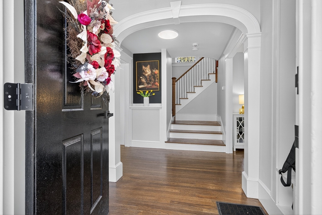 In a word? Wow! Enter this utterly endearing, reimagined Colonial & you'll see why. The arched foyer catches your eye, and it’s the warm, well-kept vibe that steals your heart. Imagine holiday feasts & casual meals in the dining room, cozy nights after work in the spacious living room, or quiet mornings in the serene, sun-splashed sitting room: a true haven for reading, journaling, or working from home. The kitchen? A chef’s dream w/quartz counters, chic backsplash, and a gas stove that begs for Sunday brunch. A full bath & laundry room round out the first floor, while upstairs you'll find two generous bedrooms and a second full bath with a modern LED anti-fog mirror. Accent windows, sleek hardwoods & stylish tile add timeless flair. Enjoy the sunny side yard, grill on the composite deck, then head in to cool off in the central air. Nestled on a little-known side street near the South Washington Historic District, this gem offers the perfect blend of privacy and convenience!