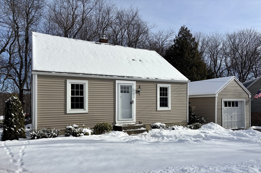Move right in to this charming 3 bedroom cape located in a neighborhood near town center. Whole house updated in 2021 with full kitchen remodel featuring new cabinets, granite countertops, stainless appliances and new flooring. Other updates include bathroom, refinished hardwood floors, crown moulding, new carpeting, new windows, vinyl siding, furnace, hot water tank and new garage door opener. First floor offers a primary bedroom, full bath, office, and light filled open concept living room / kitchen. Two additional bedrooms found upstairs. Lower level features a spacious and welcoming entertainment space with wet bar. Laundry room, workshop and exterior access are also located in lower level. Enjoy the deck conveniently located right off kitchen a great spot for entertaining and relaxing. A beautifully maintained yard completes the picture offering river rock accented planting beds, new front walk, new driveway, and spacious private back yard .