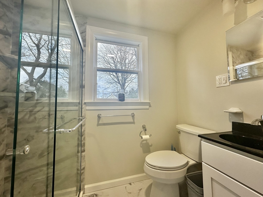 Welcome to this beautifully renovated Cape-style home, perfectly situated on a quiet dead-end street that offers both peace and convenience. This charming 4-bedroom, 2-bathroom residence was completely thoughtful modern updated. The finished basement provides additional space — ideal for a guest room, home gym, or family room. On the first floor, you’ll find a spacious dining room, an updated kitchen, a bright living room, one bedroom, and a full bathroom. Upstairs, there are two additional generous bedrooms, each filled with natural light, along with another full bath, offering both comfort and privacy. The outdoor space is just as inviting, featuring a fenced-in backyard. A large driveway easily accommodates up to six cars. Conveniently located near the commuter rail and major highways, this home provides easy access for commuters while maintaining the tranquility of a quiet residential neighborhood.