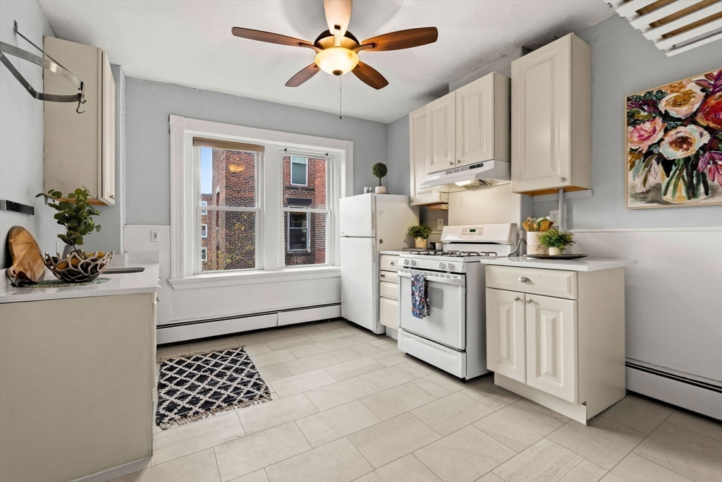 Affordable Cambridge living starts here. This sun-drenched third-floor 1-bedroom puts you right in the heart of E.Cambridge café and restaurant scene without the hefty price tag. You're steps from the Donnelly Field, frequent bus lines, Valente Branch Library, Elementary & Middle school. With a 97+ Walk Score, everything you need is at your doorstep. Freshly updated with new quartz countertops, stainless appliances, and modern light fixtures, this unit is move-in ready. Hardwood floors flow throughout, while bay windows and oversized bedroom windows flood the space with natural light. The kitchen offers ample counter space and pantry storage with garden patio view. Flexible living and bedroom spaces. The shared garden patio—perfect for morning coffee or evening drinks in every season as well as building your own garden and grilling. Laundry and bike storage in basement. Trade parking hassles for urban convenience. This is Cambridge.