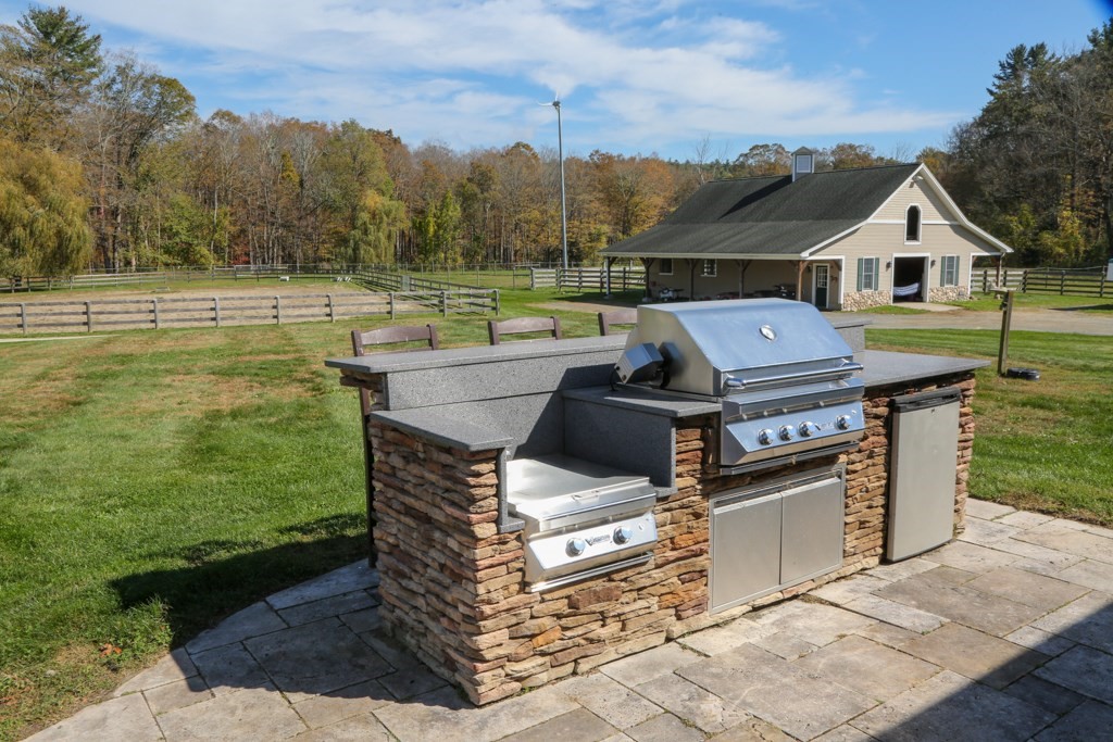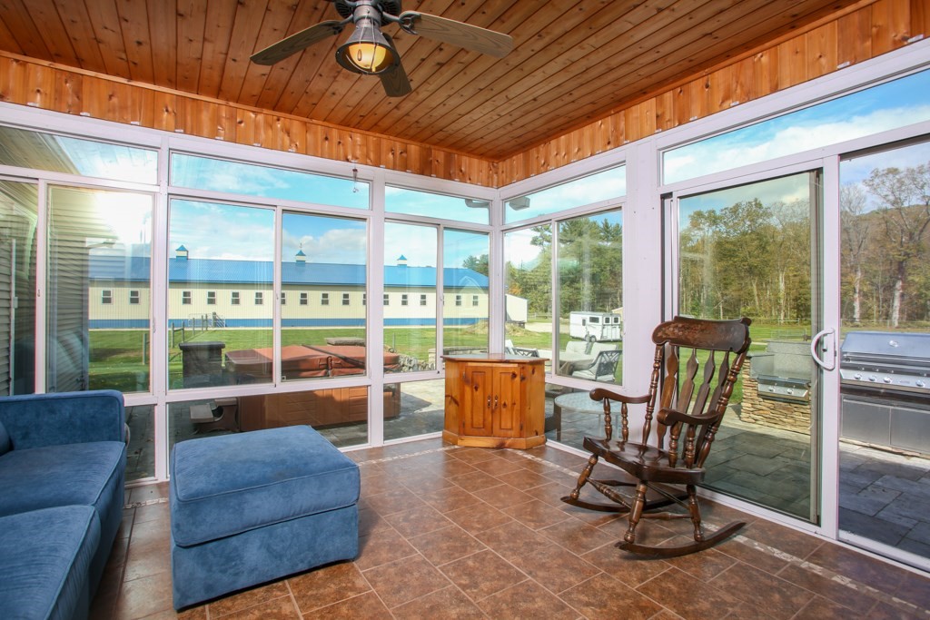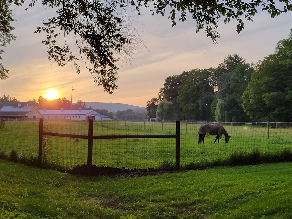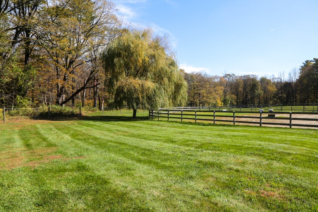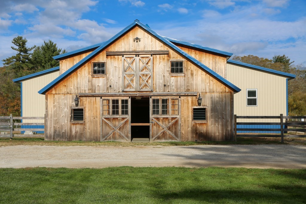 An equestrian dream property set on 15 acres in the towns of Westhampton and Northampton with over 1,300 ft of river frontage on the North Branch of the Manhan River. Designed for the discerning horse enthusiast, the estate features nine paddocks, a hunt field, and two exceptional barns. The showcase three-stall barn (built 2019) offers an attached 80’x180’ indoor arena with Tru Tex fiber footing, heated/cooled viewing room, and SIPS construction for energy efficiency. The five-stall main barn includes a hay loft, wash stall, and solar panels supplying power to both barn and residence. The well maintained single-level home offers two ensuite bedrooms with fireplaces, an open kitchen, dining and living area with fieldstone fireplace, laundry room, and full basement with garage access. A rare offering combining craftsmanship, sustainability, and equestrian excellence with easy access to the Five College area and regional show circuits. Floor Plans available for all main structures.