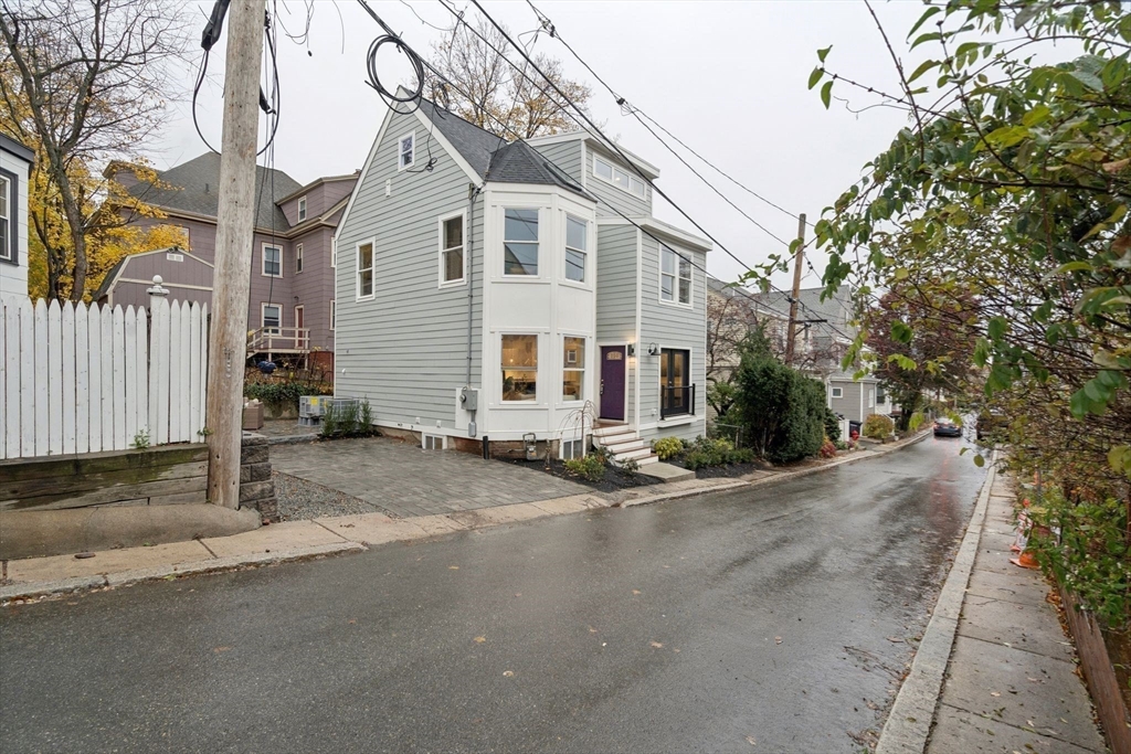 Welcome to 15 Spring Hill Terrace— where timeless New England charm meets sophisticated modern living. This stunning 4-bed, 3.5-bath welcomes you w/ warm hickory floors & a show-stopping floating glass staircase. The chef’s kitchen impresses w/ a Wolf range, waterfall quartz countertops, breakfast bar & custom cabinetry. A restored stained-glass window brings artful heritage to the open dining area, while the living room’s sleek gas fireplace is the perfect backdrop for entertaining or relaxing in style. Upstairs there are 3 spacious bedrooms, including a primary suite w/ a private balcony, dual closets, fireplace & spa-inspired bath w/ a steam shower. The lower level includes a guest suite, family room w/ wet bar, full bath, laundry room & utility closet w/ one of the 2 home’s heat pumps. Outside, enjoy a modern patio & paver driveway w/ parking for two+. Also equipped for EV charging. Every detail embodies luxury, comfort, accessibility & the best of modern Somerville living!