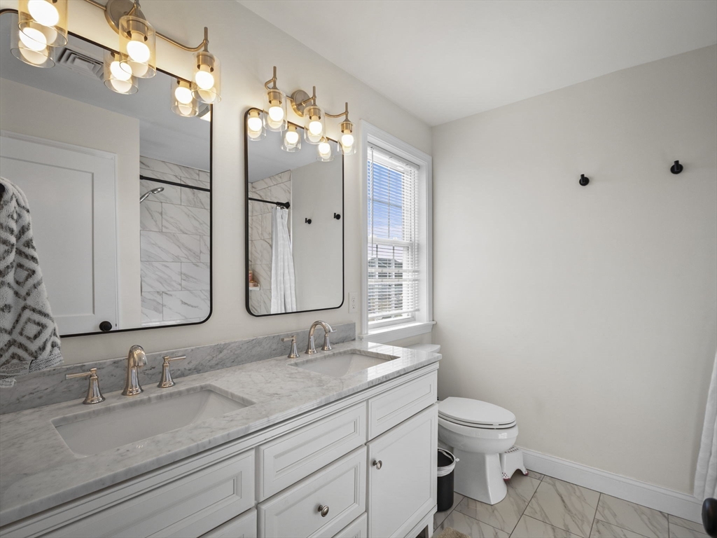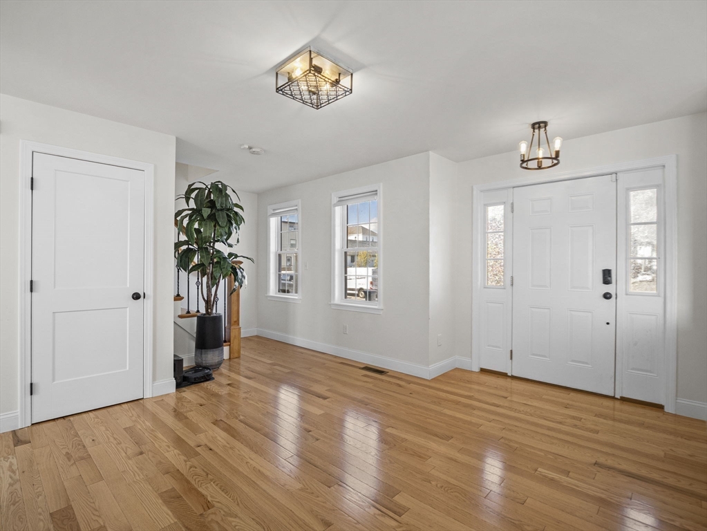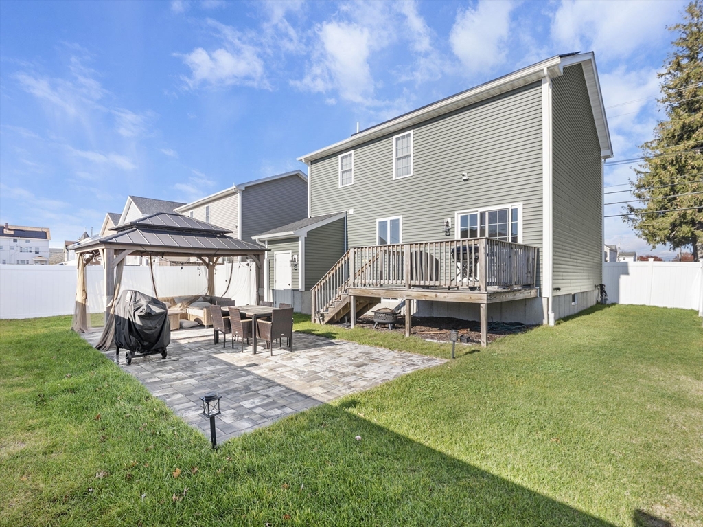 Built in 2022, this stunning 3-bedroom, 2.5-bath Colonial combines modern design with peaceful water views. The bright open-concept layout is filled with natural light and features beautiful oak hardwood floors throughout the entire home. The spacious kitchen includes granite countertops, white shaker cabinets and a large island perfect for entertaining. The primary suite offers dual closets and a private bath. Upgraded 200 AMP electrical. The backyard was fully fenced with a new patio added in June 2024 which is ideal for relaxing or hosting gatherings. The 760 sqft basement provides endless possibilities for a gym, office or media room. Move-in ready, beautifully updated, and located in a sought-after neighborhood. Don’t miss this rare water-view gem offering comfort, quality and lifestyle!