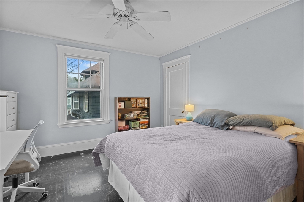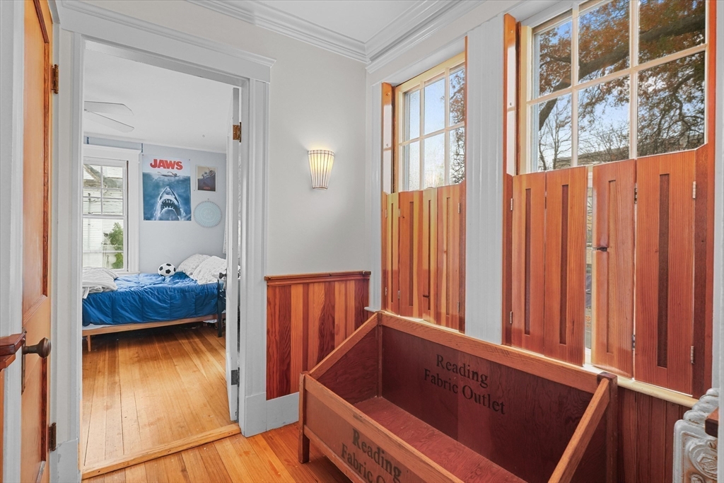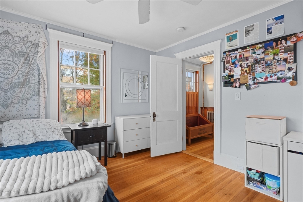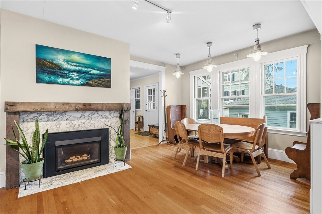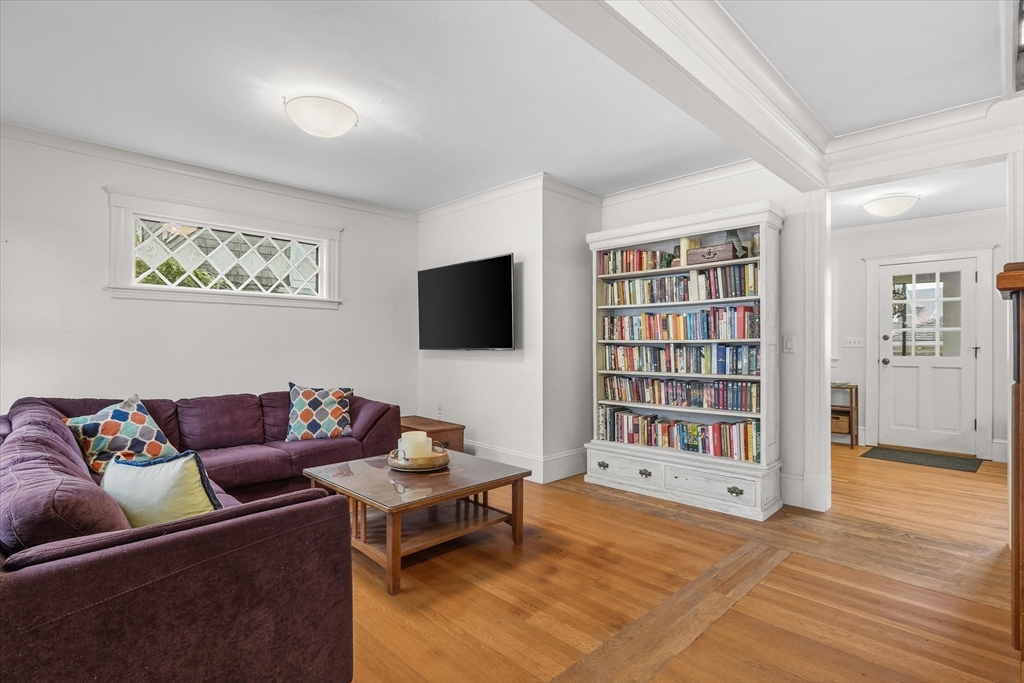 This classic Four Square Craftsman style Colonial combines period features and modern living into this beautiful residence. Welcome inside to discover timeless details such as leaded windows, a French door, elegant millwork, hardwood flooring & crown molding throughout providing an opportunity to own a classic home with all the modern comforts such as the updated beautiful spa like bathroom and gourmet custom-built, open kitchen with a gas fireplace. The inviting living, kitchen, dining, bath mudroom & sunporch are located on the first floor with a handcrafted stairway leading to the 2nd- featuring 4 bedrooms, a full bath & "walk-up" attic offering a finished heated bonus room or storage The basement also offers a finished bonus room. The exterior features a cozy & private fenced yard, 2 car garage & additional parking. Ideally located in South Salem near the College and MBTA. Very close to a neighborhood beach or Forest River/Bike trail. Peek at ocean views from the back of property