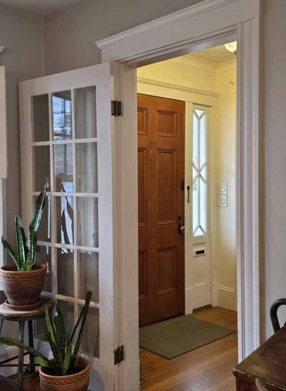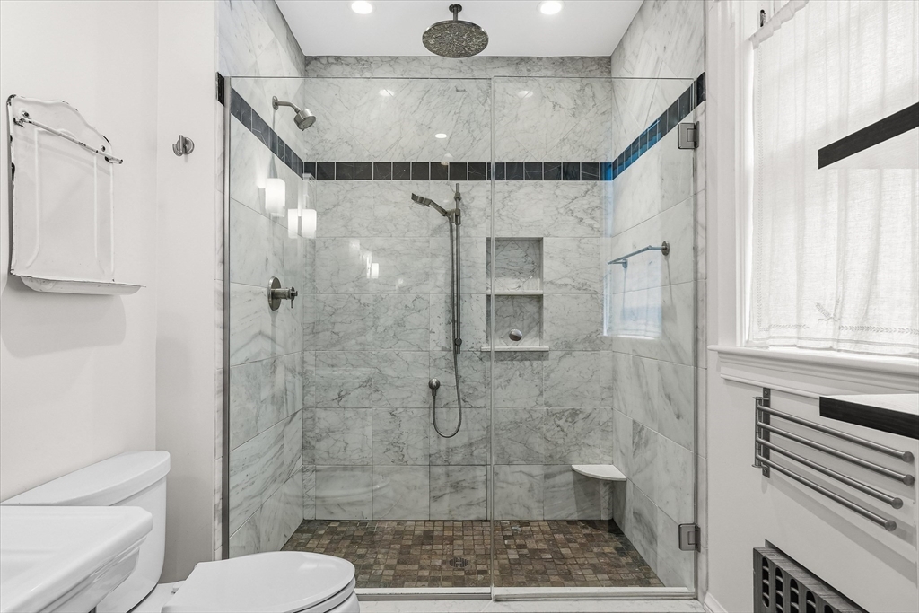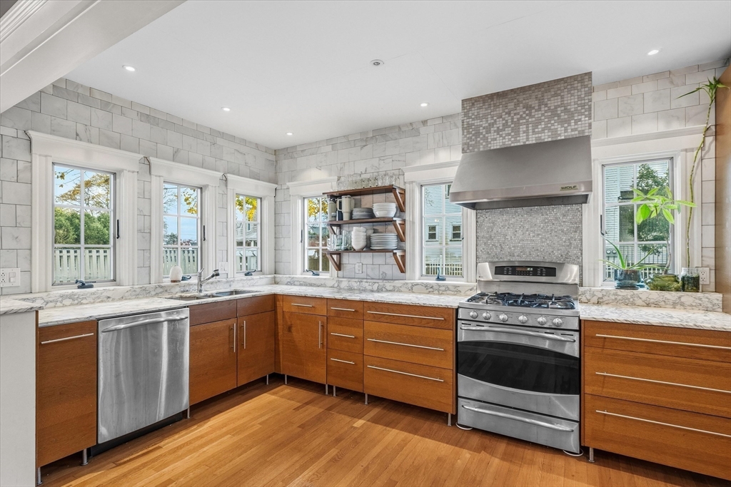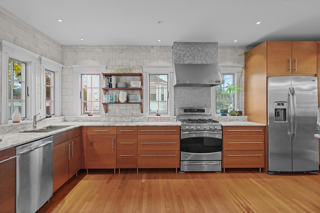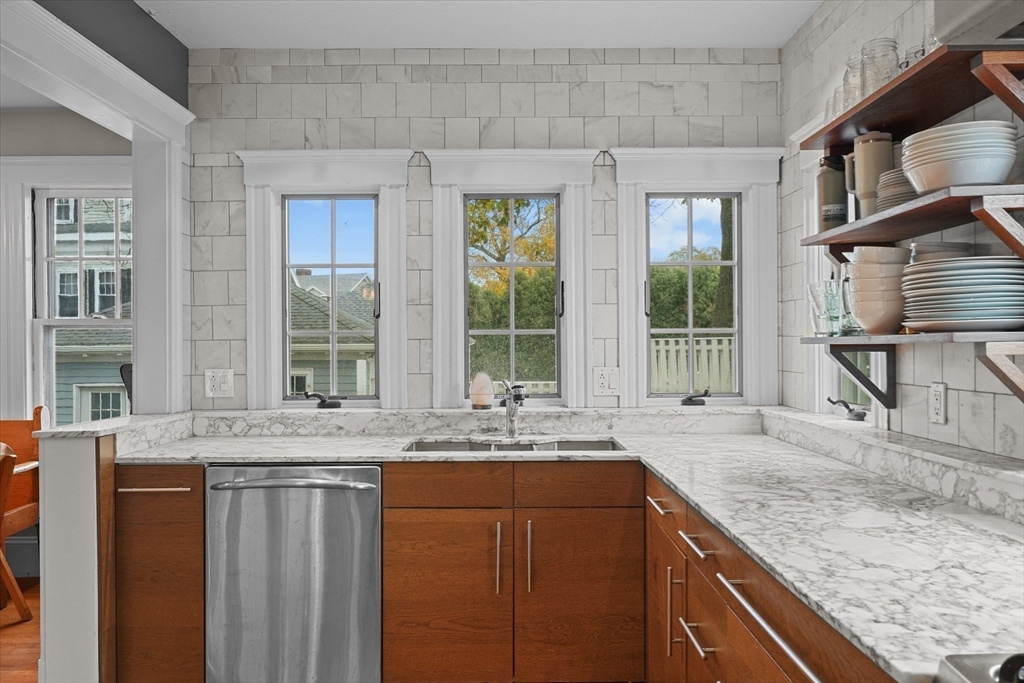 This classic Four Square Craftsman style Colonial combines period features and modern living into this beautiful residence. Welcome inside to discover timeless details such as leaded windows, a French door, elegant millwork, hardwood flooring & crown molding throughout providing an opportunity to own a classic home with all the modern comforts such as the updated beautiful spa like bathroom and gourmet custom-built, open kitchen with a gas fireplace. The inviting living, kitchen, dining, bath mudroom & sunporch are located on the first floor with a handcrafted stairway leading to the 2nd- featuring 4 bedrooms, a full bath & "walk-up" attic offering a finished heated bonus room or storage The basement also offers a finished bonus room. The exterior features a cozy & private fenced yard, 2 car garage & additional parking. Ideally located in South Salem near the College and MBTA. Very close to a neighborhood beach or Forest River/Bike trail. Peek at ocean views from the back of property