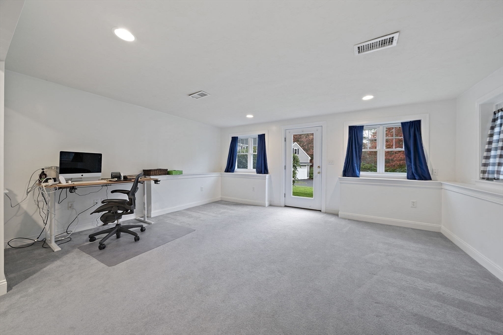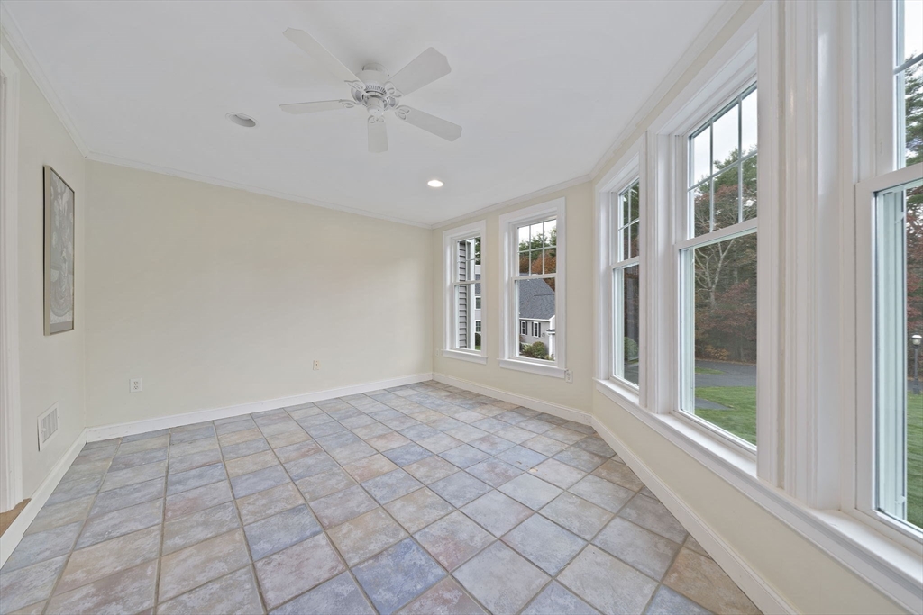 What you have been waiting for!! A Garden Unit at Bay Farm!! One level living with a bonus: a finished walkout lower level Great Room and Full Bath. First floor features island Kitchen with wood cabinetry, granite countertops, tile floor, gas stove, new appliances, and access to attached garage. Enjoy the fabulous open floor plan with Dining Room open to tiled Sun Room and fireplaced Living Room. Office/Music Room is private and conveniently located off the Living Room. Impressive Lower Level offers a multitude of options with 800 +/- square feet of finished living space and a full bath. Embrace the Bay Farm life style-brand new communal Function Room & Exercise Room, Woodlands, Pond, Walking Trails, Tennis, Pool -all within a short distance to shops, restaurants, commuter train and bus, beaches, Health Club, and Bay Farm walking field. Seller can accommodate a quick closing! Make your move NOW!!