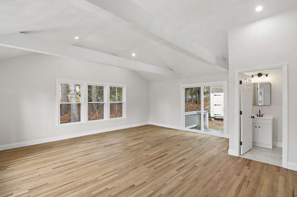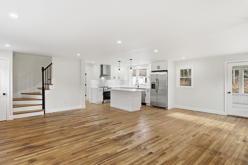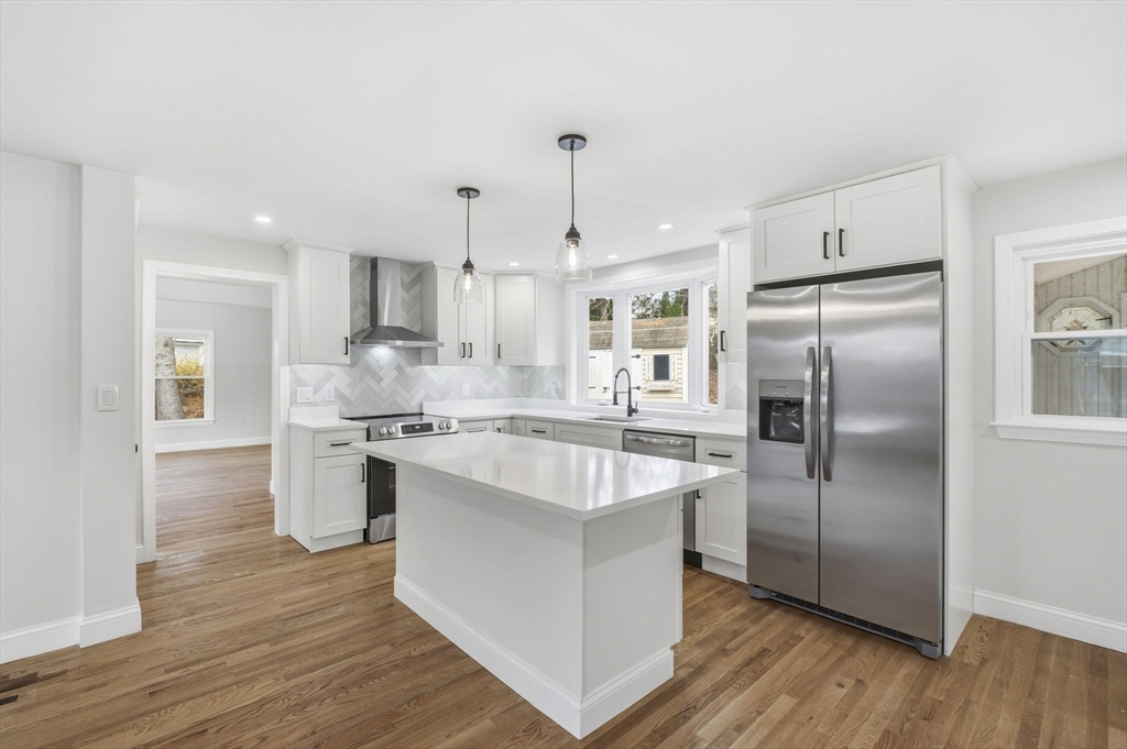 Welcome to 5 Shady Lane Dr, Burlington! This beautifully updated 3-bedroom, 2-bath Center Entrance Colonial offers stylish living in one of Burlington’s most desirable neighborhoods. The main level features gleaming hardwood floors and an open-concept layout that connects the kitchen, dining room, and living room, with a cozy fireplace. The designer kitchen showcases white shaker cabinets, quartz countertops, tile backsplash, recessed lighting, and stainless-steel appliances. A vaulted family room with a slider to the back deck, a half bath, and a charming 3-season porch complete the 1st floor. Upstairs offers 3 spacious bedrooms with hardwood floors, overhead lighting, plus a full bath with a tiled tub/shower. The finished lower level includes a versatile bonus room, luxury vinyl flooring, laundry, and storage. Additional features include 200 amp electrical, new windows, 1-year-old roof, new Heat Pump w/AC. Enjoy a private backyard setting with easy access to Rt 95, shopping & dining.