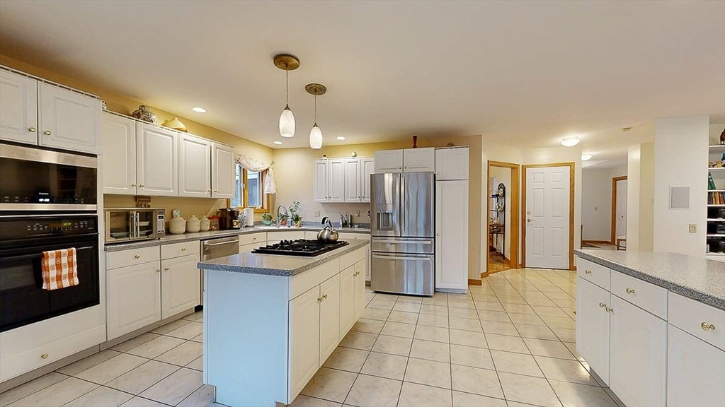 Contemporary beauty with an open floor plan and great yard in desirable Sheffield Estates in Belchertown! One owner well maintained home. The spacious main level features hardwood and tile flooring, a lovely entryway leading into the large living room, dining area, and a wonderful open kitchen with an abundance of cabinets and counterspace - a cook's dream which is open to the family room with access to the deck! Large windows throughout the home let in an abundance of light. Enjoy indoor-outdoor living with a wrap-around deck and screened porch, overlook a level yard, perfect for relaxing or entertaining. Three bedrooms, two full and two half baths offer comfort and convenience. The walk-out basement includes a large, finished bonus room ideal for a family room, office, or gym. Lovely landscaping, a quiet street, and a peaceful setting complete this move-in-ready home. Open House Saturday, November 15, 10:00 - 12:00.
