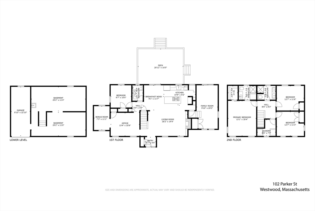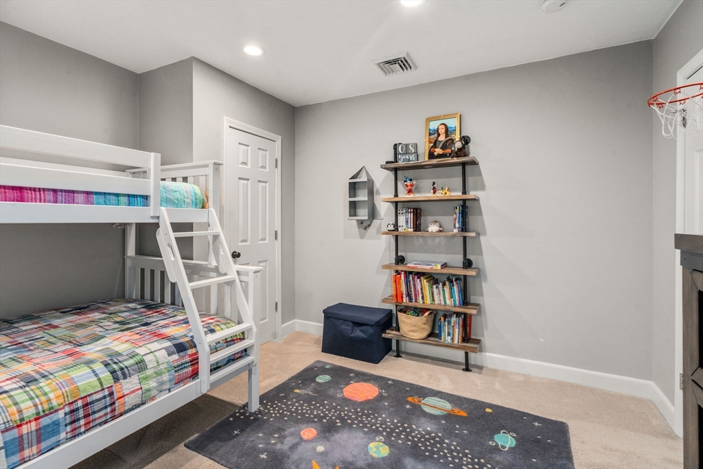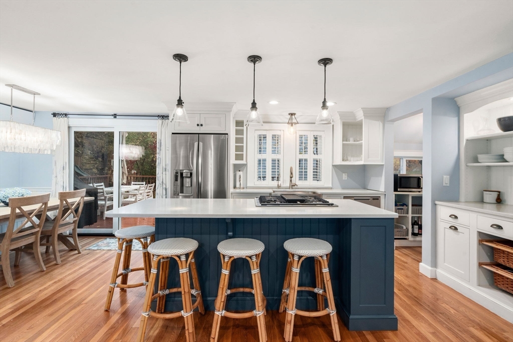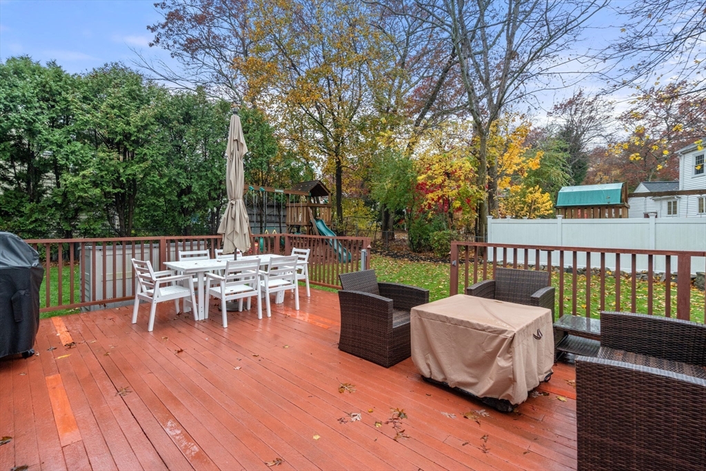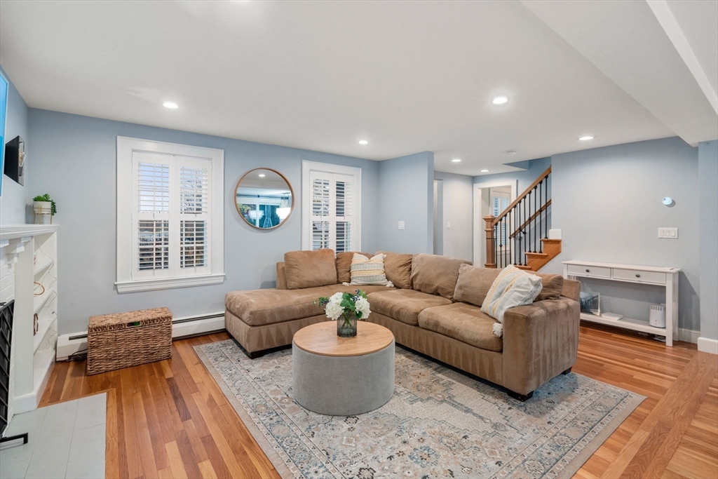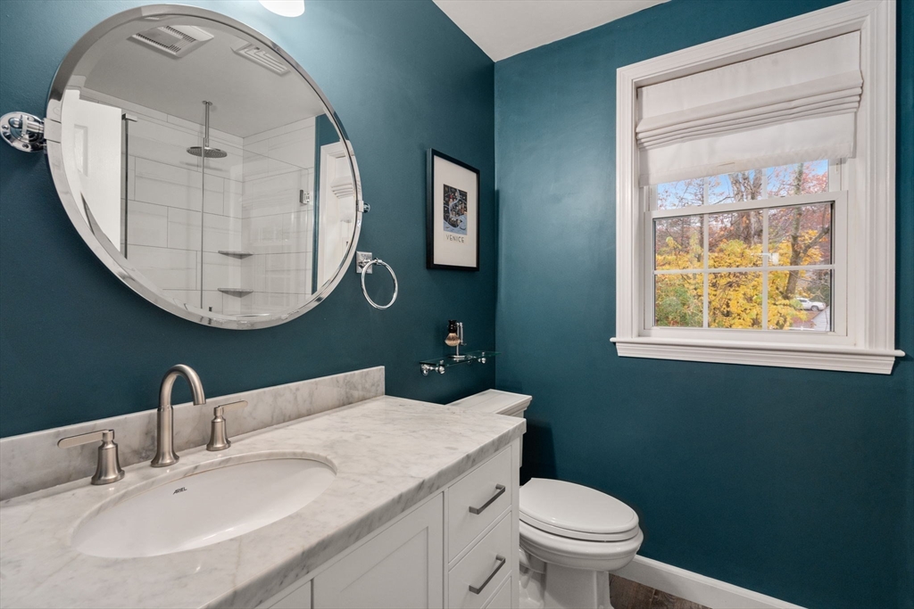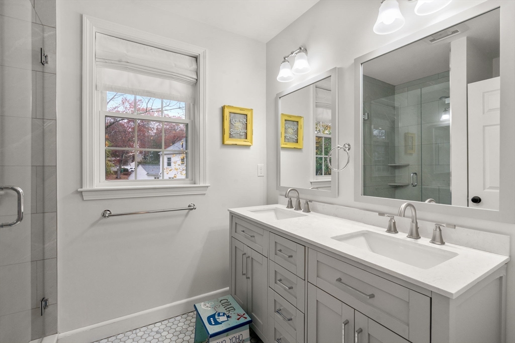Beautifully updated 4 bedroom, 3 bath home in popular Islington neighborhood. The first floor features a bright and updated open concept kitchen and living room with slider to oversized deck and well maintained, fenced in yard. First floor offers a bedroom and full bath as well as an additional living room and a den that could function as either a dining room, playroom, or an office with built in storage and a large closet. The second floor, which was a 2018 addition, features a primary bedroom with vaulted ceilings, walk-in closet and en-suite bathroom with heated floor. Additionally, two more spacious bedrooms, another full bath with double vanity and heated tile floors as well as a second floor laundry room. Perfectly situated on a quiet side street in Westwood's popular Islington neighborhood this home allows you to walk to schools, playgrounds, restaurants and shops. With newer windows and roof, as well as young systems, and upgraded electric this home has it all!