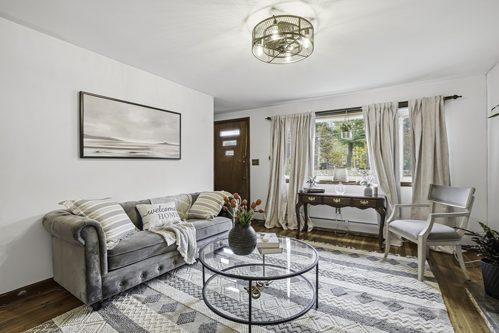 Here is your opportunity to buy a house you can live in while making it your own and building equity. Some upgrades have already been done for you updated electric panel, new vanity in bath, new exterior and interior paint, and a new gas range, some updated light fixtures. And a freshly painted bulkhead. New septic to be installed before closing. This home offers hardwood floors throughout the main level, a nice sized eat in kitchen, fireplaced living room, 3 nice sized bedrooms and a full bath. The partially finished basement has windows that are larger than you typically find in a basement letting in lots of natural light. It could be a family room, kids playroom, office. the unfinished side offers a laundry area and extra storage. There is a whole house fan and pull-down attic stairs for extra storage. Enjoy the enclosed porch and flat back yard in the nice weather. Located a short distance form RT 495 , shops, and restaurants and a short drive to Forge Park station. O/H 11/14 4-6