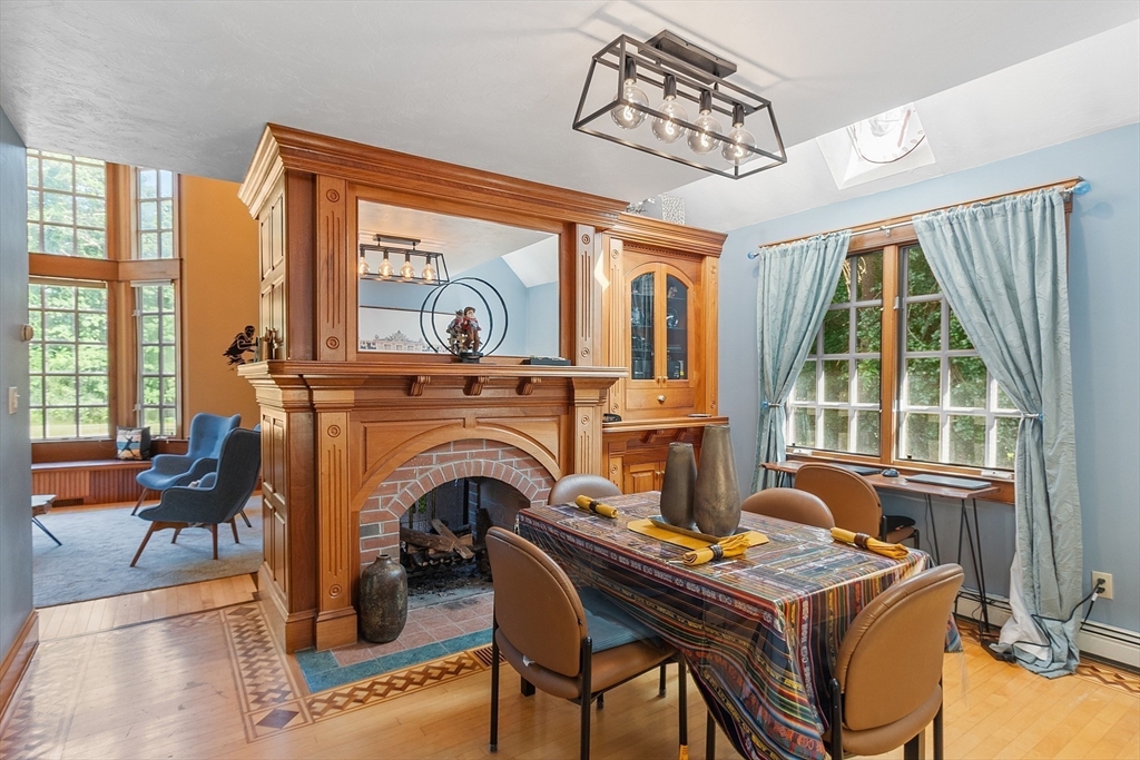 A unique home for those who love the peafulness of a secluded lot while still having great access to shopping & highways. Feels like being in the mountains, but conveniently located in historical Easton. This home has the most magnificent windows spanning the entire living room wall as you enter through the front door. Imagine watching the snow fall this winter while lounging by the cozy fireplace & cooking your homemade soup using veggies from the local organic Langwater Farm in your spacious kitchen. Upstairs is a large primary bedroom, loft style office/den area over looking those great windows & a bedroom w/ shared jack & jill bathroom. A generous sized 1st floor bedroom & full bathroom w/ laundry lends this home to 1st floor living if that suits your needs! We can't forget about the oversized finished basement just like on your vacation getaway up north, make this space the game room for friends & family! Did we mention the 4 car outbuilding.....