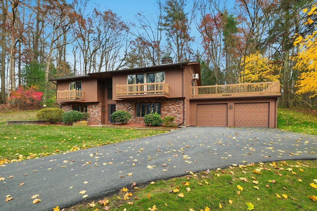 Nestled on 2.13 acres in Wilbraham, MA, this raised ranch style home boasts of an open floor plan, 2 Wb fireplaces, several decks and balconies which are accessible from the dining room, the kitchen and the main living area. The property presents a canvas ready to be transformed into your dream home. The residence features four bedrooms, providing ample space for rest and rejuvenation. Each level has two bedrooms, a full bath and a working fireplace. A freshly paved driveway, a new 17,000BTU A/C unit and a newer roof (3-4 years ago) are just some of the updates completed in the last couple of years. Consider the opportunities for creating a beautiful garden, a play area, or an outdoor entertainment space. The 1851 square feet of living area provides ample space for large gatherings and convenience of one floor living. First Open House is on Sunday 11/16 from 11:30-1:00pm