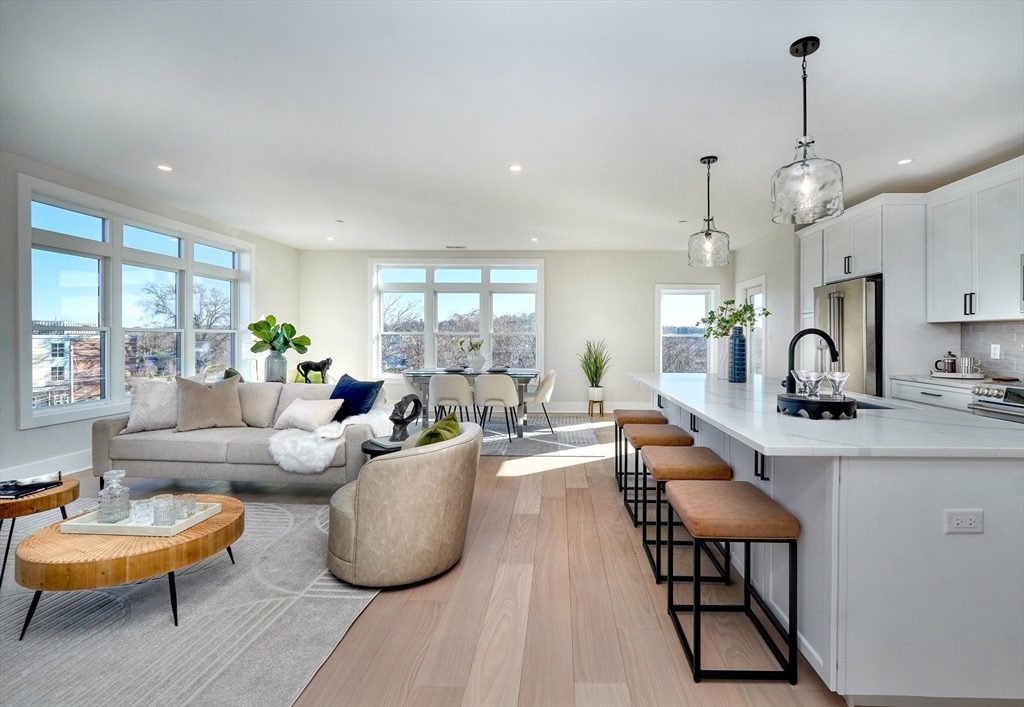 Available 1/1/26 - Experience refined living at the Wrenly Residences - Where Luxury Meets Lifestyle. This elegant 2-bedroom, 2-bathroom penthouse condo spans over almost 1,200 square feet all on one level, featuring engineered hardwood floors and a designer kitchen with top-of-the-line appliances. The spacious primary suite includes ample closet space and a luxurious tiled en-suite bathroom. The second bedroom offers versatility for guests or a home office. Enjoy year-round comfort with central heating and air conditioning, and the convenience of an in-unit washer and dryer. Amenities include two elevators, off-street parking, an attached garage, a well-equipped gym, and both common and private outdoor spaces. Pet-friendly policies ensure your furry companions are welcome. Discover the perfect blend of elegance and modern convenience. Schedule your private showing today!