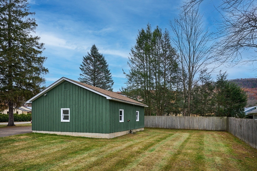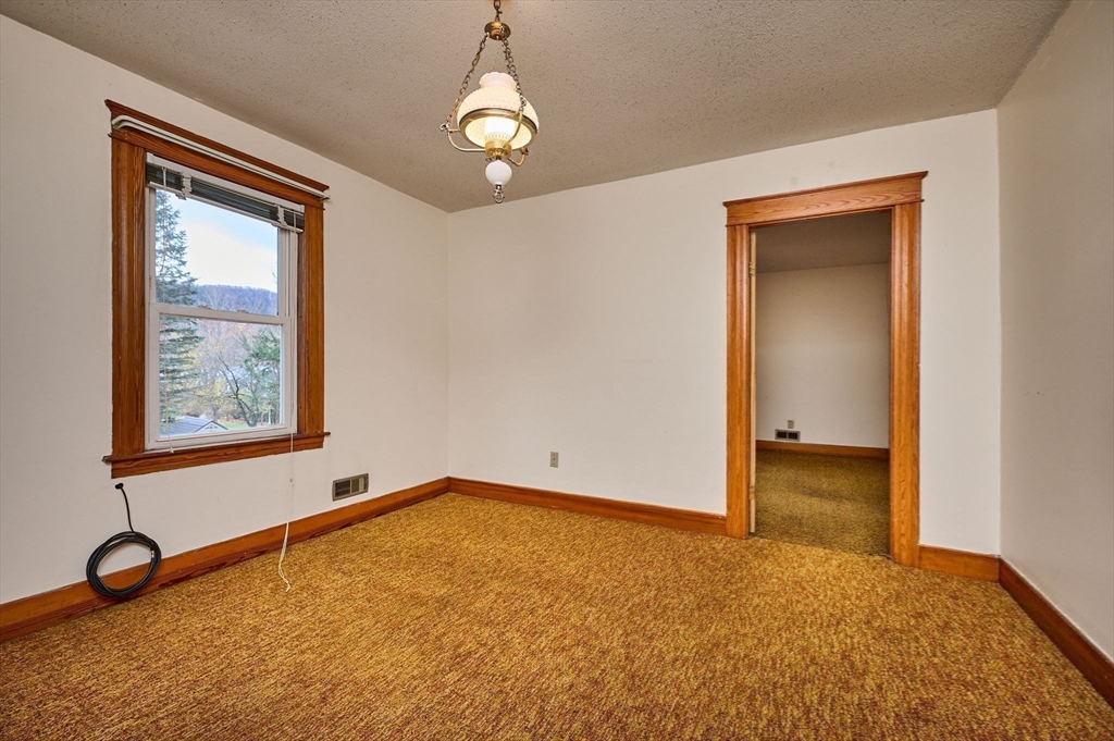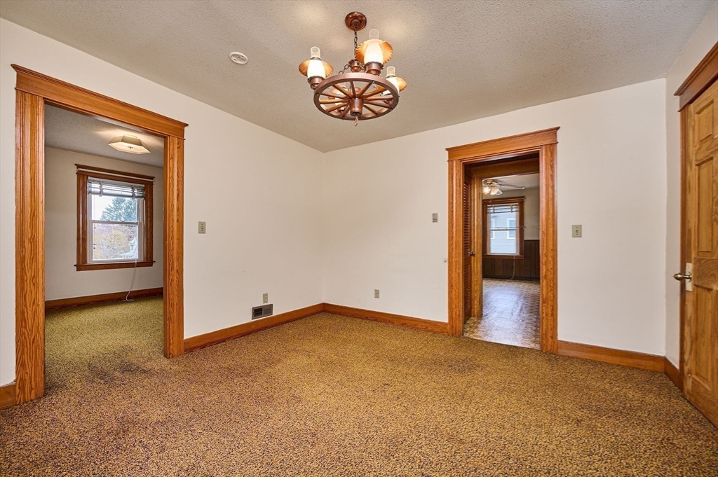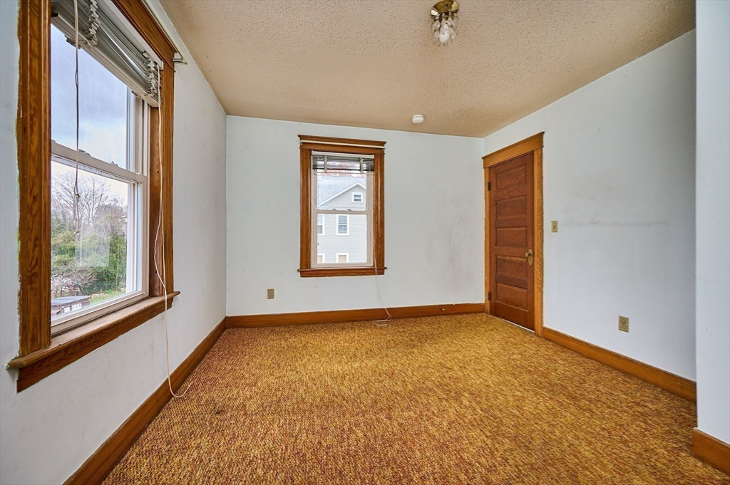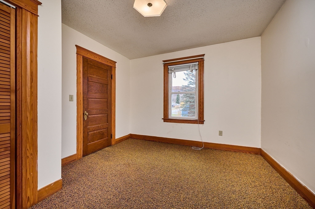 A little work will go a long way! This two family has a great floor plan, natural gas heat and hot water, replacement double pane windows, nice sized flat lot, oversized two car garage and plenty of parking. Close to downtown and all that Easthampton offers; Mt Tom range hiking and views, the wonderful bike path, breweries, great restaurants and vibrant art scene. Each spacious unit has 5 rooms, large eat-in kitchen, family room, living room, bonus space on the enclosed porch, two bedrooms, laundry in the unit, large storage closet and some original details. The property has been in the same family for three generations since the 1970's. Discover what secrets lie under the carpet. This two family would make a great home for another generational family. The property needs a back staircase for a 2nd egress to the upstairs apartment which may require financing with a renovation loan.