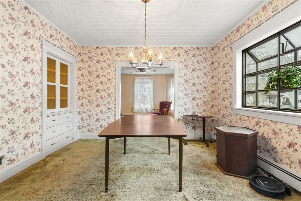 Welcome to this well-maintained 3-bed, 2-bath home lovingly cared for by the same owner for over 55 years. Recent updates include new vinyl siding, newer roof, and a renovated first-floor bath with a walk-in shower. The main level offers a comfortable layout featuring a living room and dining room with hardwood floors beneath the carpeting, an eat-in kitchen with plenty of space, and a convenient first-floor laundry room. A flexible office or work area at the rear of the home adds versatility for today’s lifestyle needs. The nicely sized deck w/ an awning is ideal for outdoor dining or relaxing. The backyard includes an oversized shed/workshop equipped with electricity, perfect for hobbies, storage, or projects. Located in a quiet neighborhood w/ easy access to downtown, shops, restaurants, commuter rail, and just moments from Riverside Park w/ its extensive 50 acres & 1.38 miles of walking trails, this property presents an excellent opportunity for buyers seeking value & convenience!