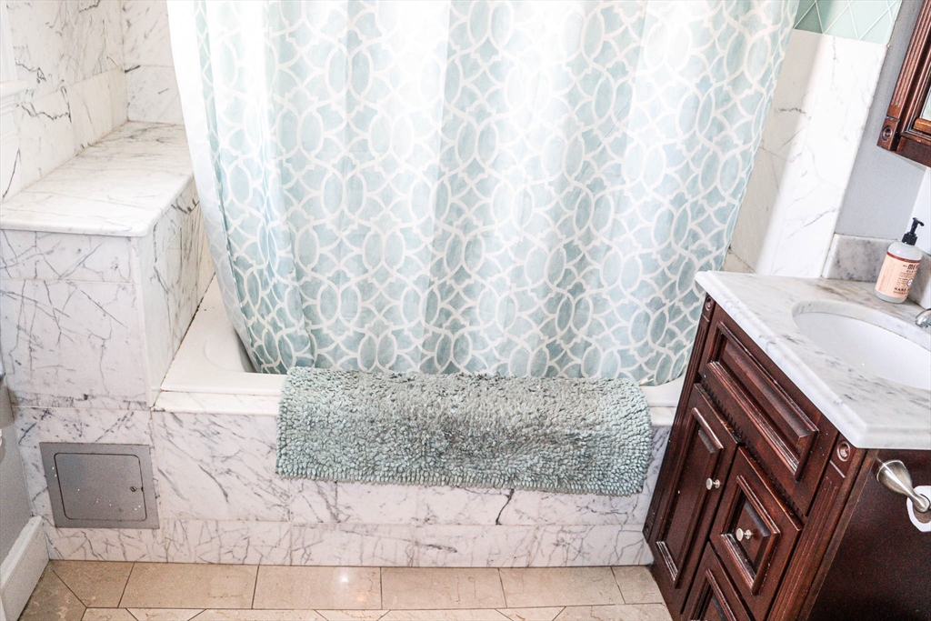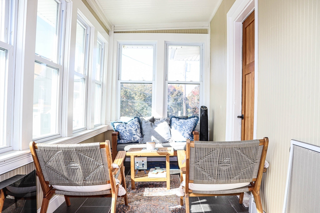 Discover refined living at Lancaster Street, Quincy in this two-bedroom apartment with a sunroom. Enjoy Quincy's lively offerings with nearby transport, eateries, boutiques, and the bustling center. The open floorplan transitions seamlessly from living to dining areas, with sunlight brightening the sunroom through elegant French doors. Recessed lighting and hardwood floors add a sophisticated touch. The stylish kitchen features granite countertops and modern appliances. Two luxurious baths, a bonus storage room, and a spacious primary bedroom with a walk-in closet enhance comfort. A third-floor laundry area & additional storage, paired with private off-street parking, provide convenience. Located less than a mile from Quincy Center train station, numerous transportation options are within reach. Available January 1st. $2650/month, tenants cover gas and electric, while water & sewer are included. Seeking tenants with solid credit and references. No pets and non-smoking please.