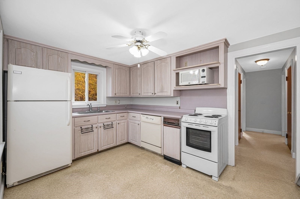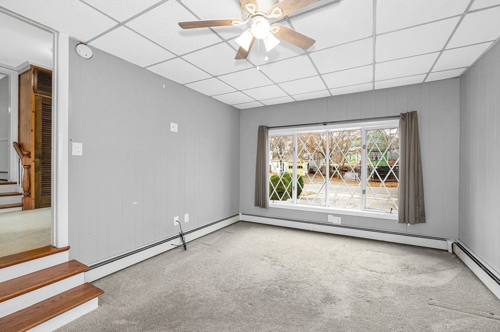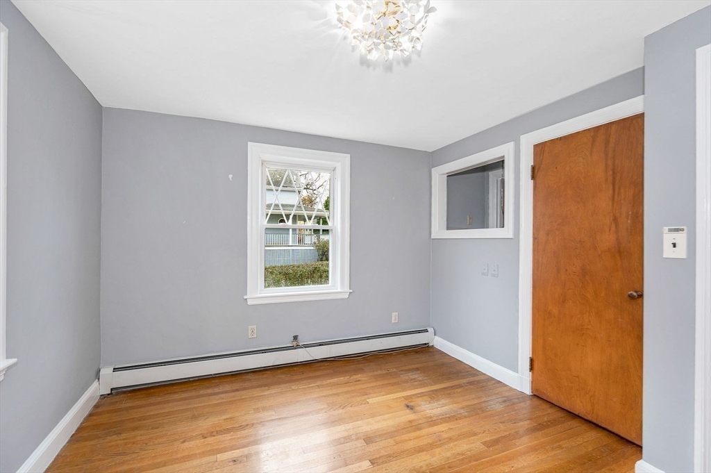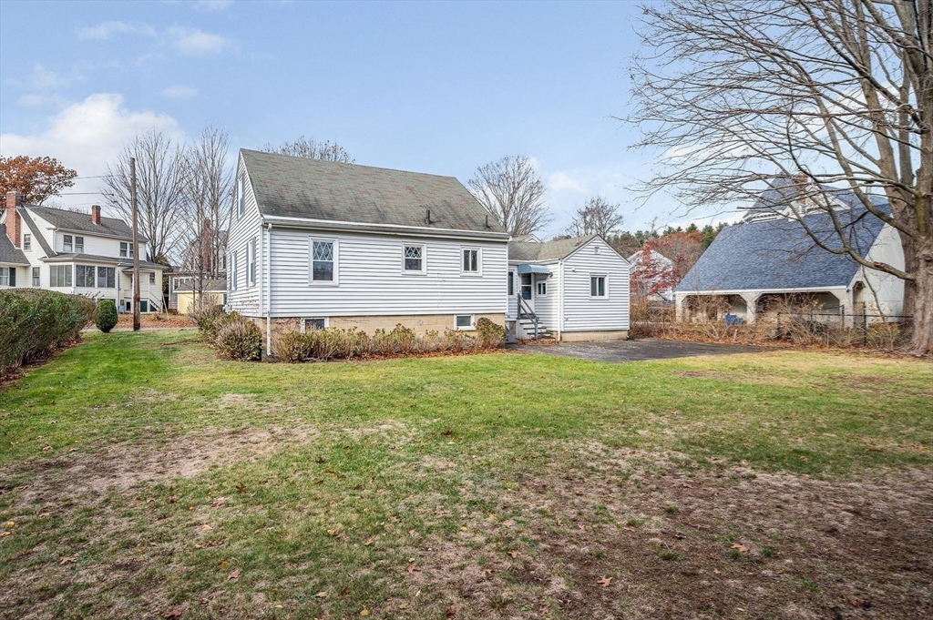 Don't miss this opportunity to build some equity in a great Greenwood neighborhood! This Cape style home is chock full of potential. 6 Rooms and 3 bedrooms all on one level. Fireplaced livingroom, hardwood floors. First floor laundry room. Main bedroom on first level with it's own bath and separate entrance could function well for extended family or elderly parents. If you need extra space, take advantage of the full walk up second floor, which is unfinished now (but is heated). Possibilities include a second floor main bedroom suite, or two more modest sized bedrooms. Maybe a familyroom/ playroom? There is a nice sized fenced in yard, but if you need more green space, the backyard abuts Mapleway Park with it's 12 acres of grass, ball field, tennis courts/ pickleball, and playground. The kids will love it and the dogs will too! Convenient to major highways, schools and Commuter Rail Station (Greenwood) to Boston. Roll up your sleeves, update and make this home your own. OH Sat and Sun