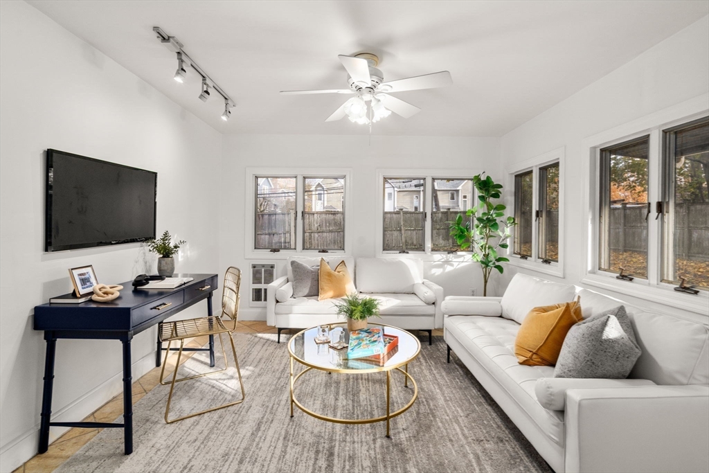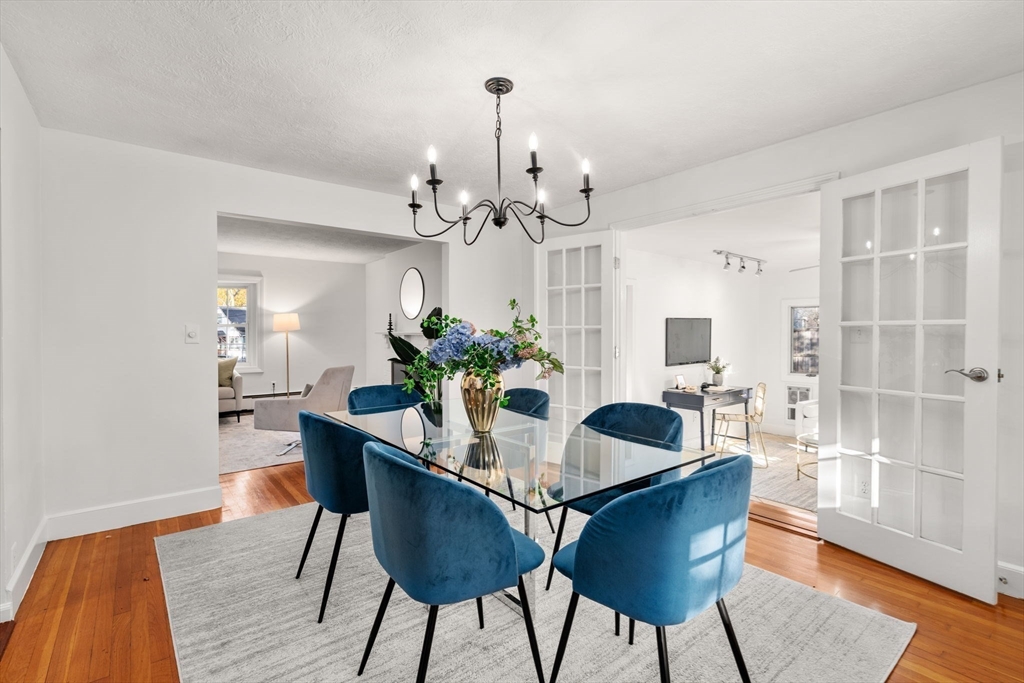 Space abounds throughout this charming seven room ranch sited on a 9,000+ square foot lot. Featuring a large living room with bay window, fireplace and hardwood floors leads to a bright dining room with French doors opening to a family room with exterior access. The updated kitchen offers S/S appliances and granite counters, three generous bedrooms including 1 ensuite, 3 full bathrooms total. This home offers versatile spaces including an expansive finished lower level with fireplace, bar, full bath and laundry room. This single-family residence offers ample storage,1818 square feet of living area, storage shed and one-car garage. Proximity to shops, restaurants, public transportation, Cambridge and Boston enhance this home.