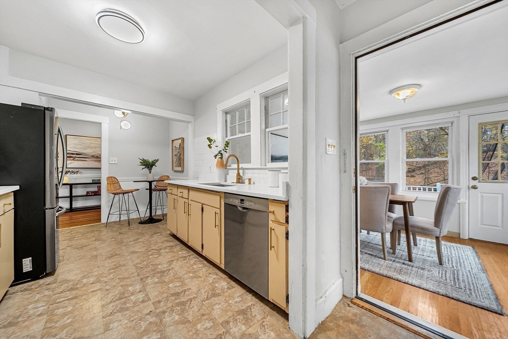 A rare opportunity to own in Newton Centre, offering both exceptional value and tremendous potential inside and out. This 3-bed,1-bath bungalow sits on nearly 10,000 Sq Ft of level land with an expansive private backyard overlooking gorgeous conservation land. Inside, the large family room is filled with natural light, built-ins, a charming window seat, and a cozy wood-burning fireplace creating a warm and welcoming space. The kitchen, with new quartz countertops, flows into the dining room, which opens to a large deck perfect for outdoor dining or relaxing. The walk-out basement with direct access to the yard provides excellent possibilities for future finished space - family room, playroom, home office, or more. Thoughtfully maintained with a new architectural-shingle roof and updated systems.Close to top-rated schools, parks, and major commuter routes, this home offers comfort, potential, and the chance to make it your own in one of Newton’s most desirable villages.