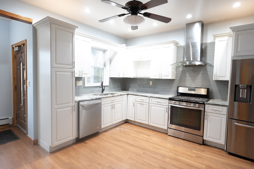 Boasting 2,378 sq ft of living space, situated on a corner lot, this spacious 5-bedroom, 2-bath home, with updated roof and heating, is just minutes from shops, restaurants, parks, schools, and public transit, with easy highway access. Hardwood floors, recessed lighting in kitchen with granite countertops and stainless-steel appliances. Extra bonus rooms for office, playroom and entertainment. Basement for plenty of storage. Beautiful exterior stone walls, paved driveway that provides ample parking and an attached shed with exterior basement access for added convenience. This is a one of a kind home waiting for a new family to make it their own.