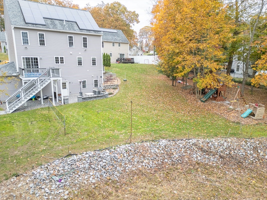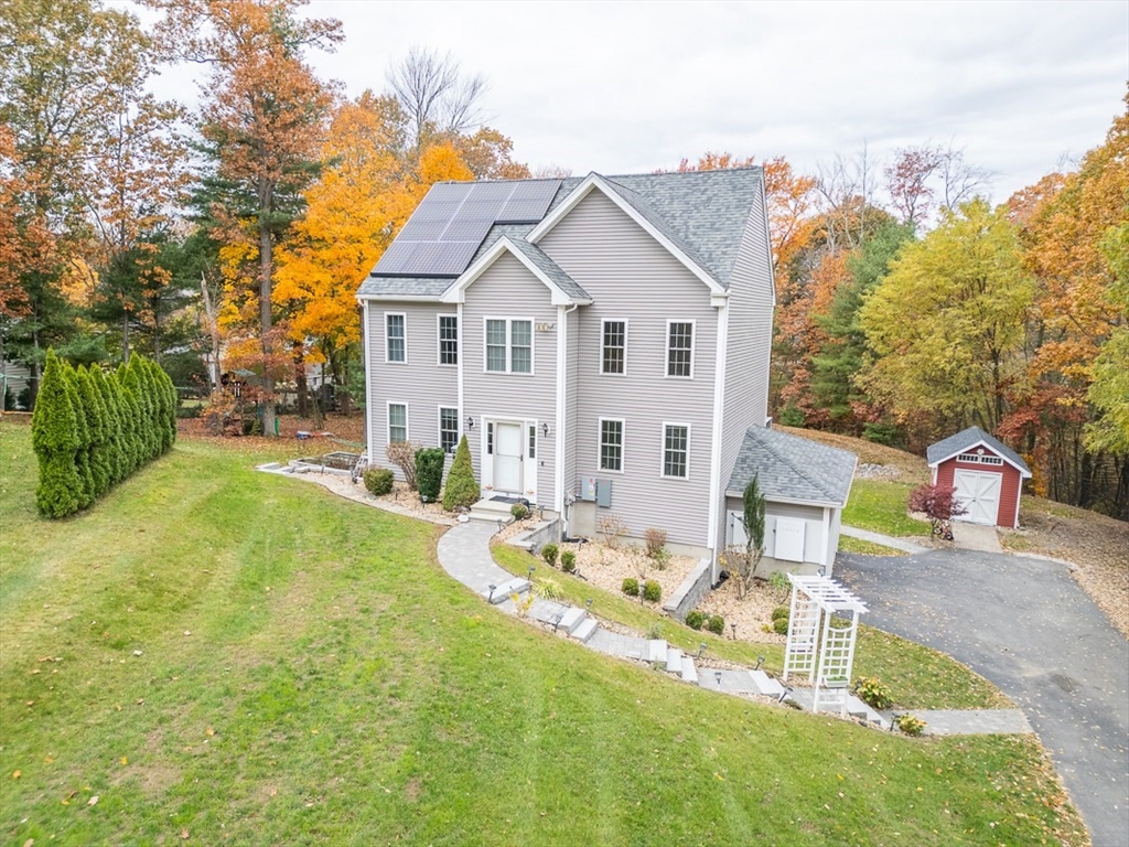 Energy-efficient! 11.05 KW owned solar system under the SREC II program has generated passive income since 2019 + 3 Tesla batteries. Built in 2015, this stunning set-back 4-bedroom home w/ beautiful curb appeal offers timeless style & thoughtful updates. Dark hardwood floors flow through the main level, featuring a welcoming foyer, dining room, & living room. The eat-in kitchen showcases rich cabinetry, a center island, white tile backsplash, pantry & brand-new appliances (except range & microwave), opening to a back deck. Upstairs, the primary suite features a walk-in closet & ensuite w/ dual vanities, joined by 3 additional bedrooms & a full bath. The walk-out basement adds 400+ sq ft of finished living space w/ a family room, full bath, & garage access. Enjoy a serene outdoor retreat w/ stone walls, a beautiful patio sit-out area, & a spacious yard. Attic access adds bonus storage! Not one to miss!
