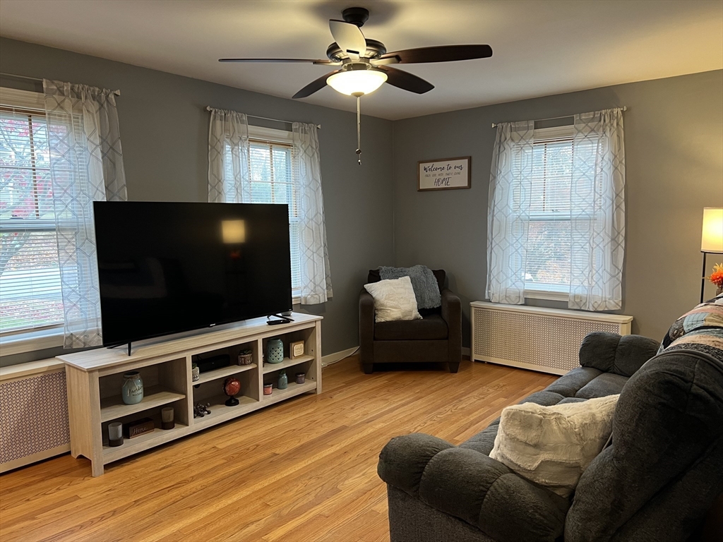 Well maintained & move-in condition, this 3 Bedroom Cape has a first-floor living option situated on a nice corner lot with private, expansive back yard for all your entertaining needs. A welcoming 3 season sun room entrance off the Kitchen features a fun retro stove, bright cabinetry and new country sink. A designated Dining Room, Full bath, Bedroom and a large Living Room complete the first floor. There are Hardwood floors, carpeting and ceiling fans throughout. Upstairs are 2 spacious Bedrooms and an oversized 1/2 bath that can easily be converted to a Full. The garage/basement area has a nicely lit work bench area, Laundry with W/D, laundry sink and access to the nicely tiered back yard & Storage shed for all your garden tools. Minutes to downtown, Restaurants, Shopping, Schools & easy Highway access to Rts 91 and Rt 2. First Showing at (2) Open Houses: Saturday and Sunday ~Nov 15 & 16 ~Noon to 2pm