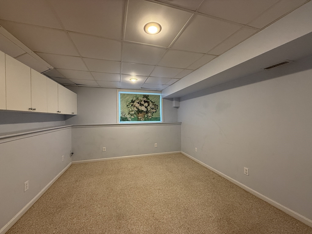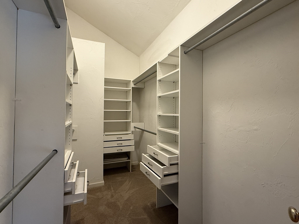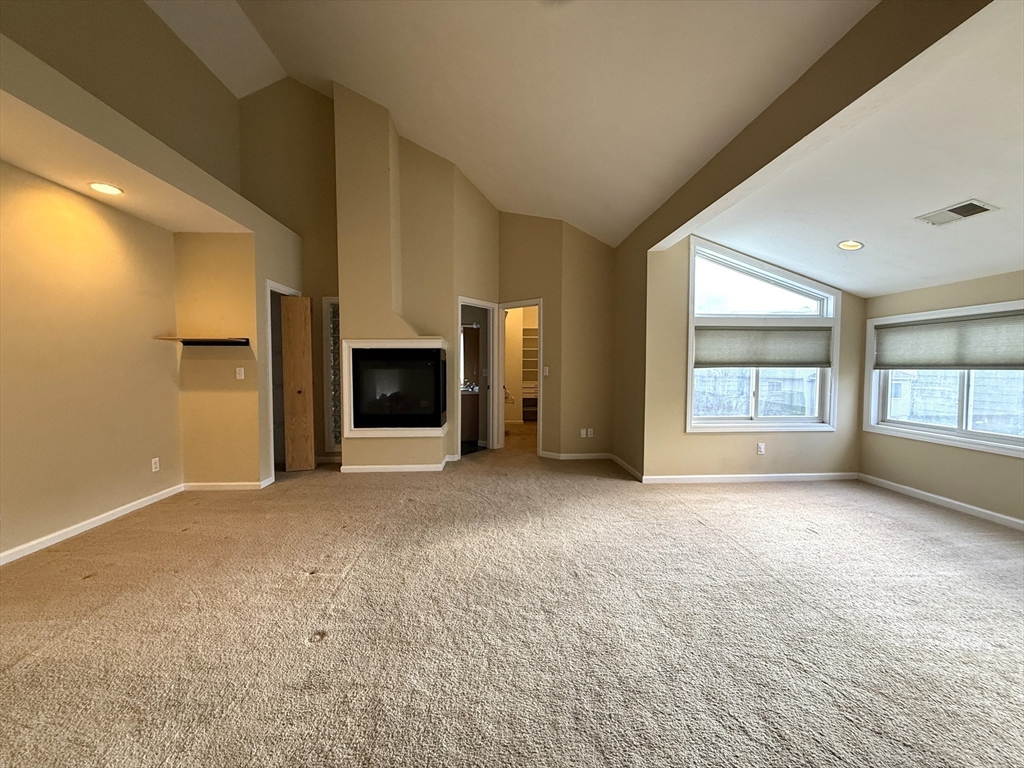 Welcome to this spacious townhome offering 2 bedrooms, 2.5 bathrooms, & a 2-car tandem garage. The main level features an open-concept floor plan with a generous living & dining area, hardwood flooring & a gas fireplace. The eat-in kitchen with stainless steel appliances, ample cabinetry, & a large peninsula breakfast counter with direct access to the private deck. The 2nd floor includes a primary suite with a cathedral ceiling, sitting area, gas fireplace, large walk-in closet with custom shelving, two additional closets, & a luxurious en-suite bath featuring double sinks, a jetted tub, linen closet, & separate shower. The second bedroom also offers a cathedral ceiling and a private full bath. The finished lower level provides a bonus room ideal for use as a home office/ gym.. A loft area offers additional flexible space, suitable for a 2nd office. Conveniently located near schools, shopping, restaurants, parks, major highways, & MBTA Rail. No pets or smoking.