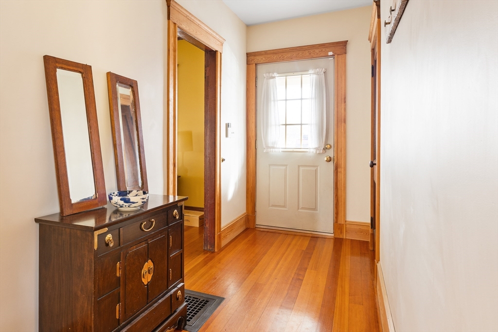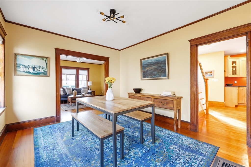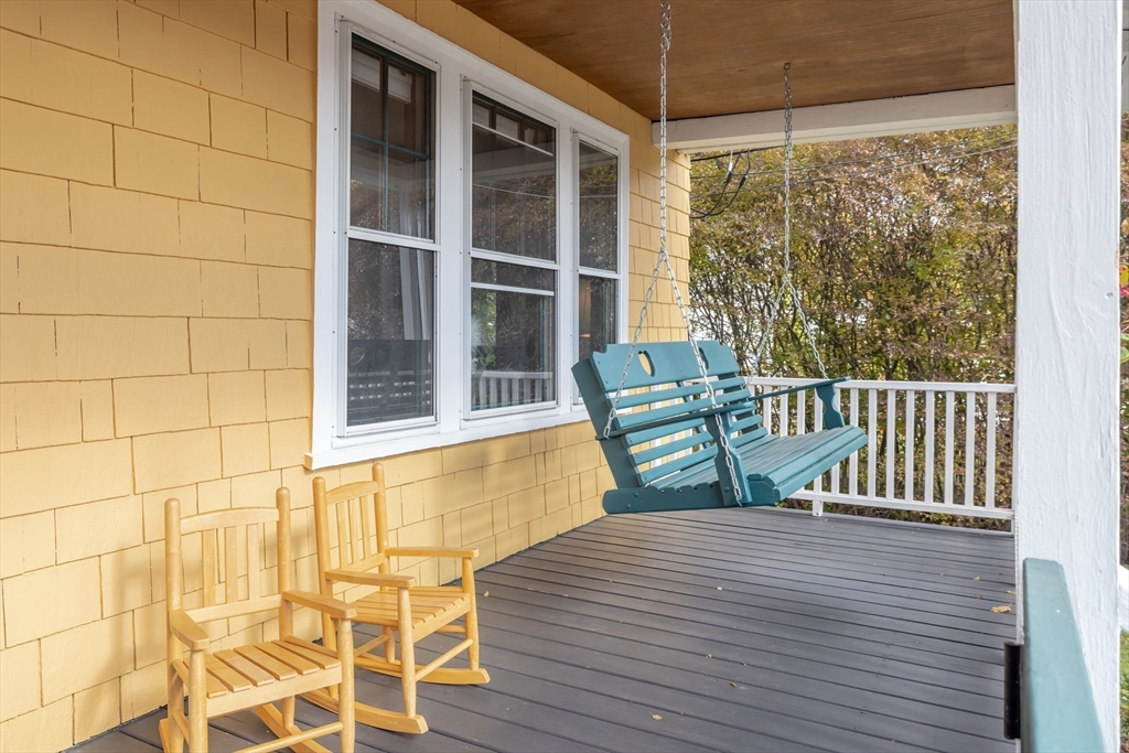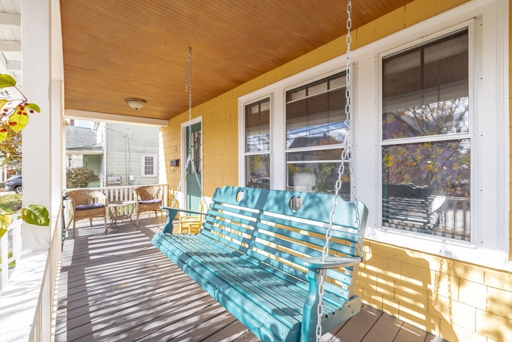 Great location in Natick Center. This home blends character & modern comfort and offers the best of downtown living. Enjoy the welcoming front porch with its charming swing, perfect for unwinding. The bright living room offers abundant southern light, and the renovated eat-in kitchen features stainless steel appliances, wood cabinetry, a dining nook and a built-in hutch. A formal dining room, convenient first-floor bedroom and updated full bath complete the main level. The second floor, added in 2003, boasts a spacious primary bedroom with a large walk-in closet, an updated full bath with a soaking tub and tiled shower, plus a second generously sized bedroom with a double closet. The unfinished basement provides great versatility for future living or fitness space and features a built-in workbench. Outdoor highlights include an oversized deck ideal for gatherings, a fenced yard, a one-car garage, and a storage shed. Just 1/2 mile to the Natick Center Train Station to Boston.