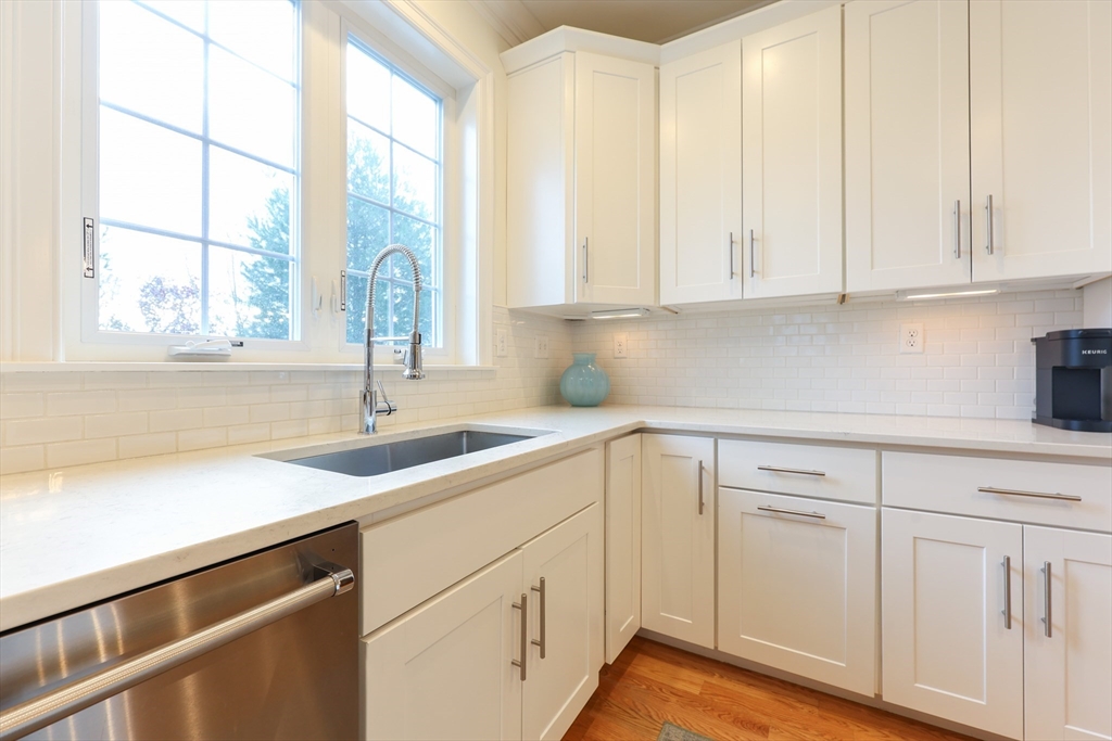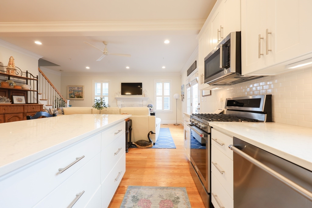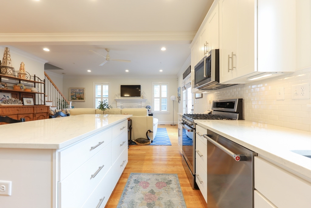 Welcome to this absolutely fabulous townhome. Every room is flooded with natural sunlight and adorned with spectacular amenities. Gleaming hardwoods, wainscoting, updated counters, gas cooking, stainless appliances, plantation shutters and blinds, gorgeous lighting fixtures, gas fireplace with T.V. above. This open floor plan is perfect for everyday living & entertaining. Sliders open to a composite deck offering views of the private & tranquil backyard. Primary bedroom suite w/custom walk-in closet, hardwood flooring. Two additional, carpeted bedrooms & full bath, with custom tile work complete the 2nd level. Carpeted 3rd floor bonus space, perfect for in home office or extra sleeping. TWO car garage. Basement could easily be finished. Enjoy this convenient location near shopping, restaurants, commuter routes, public transportation & vibrant downtown Framingham. Excellent setting. Pictures don't do this one justice. This is an absolute MUST SEE Showings begin immediately!!