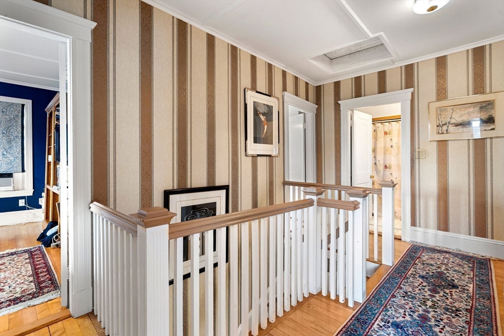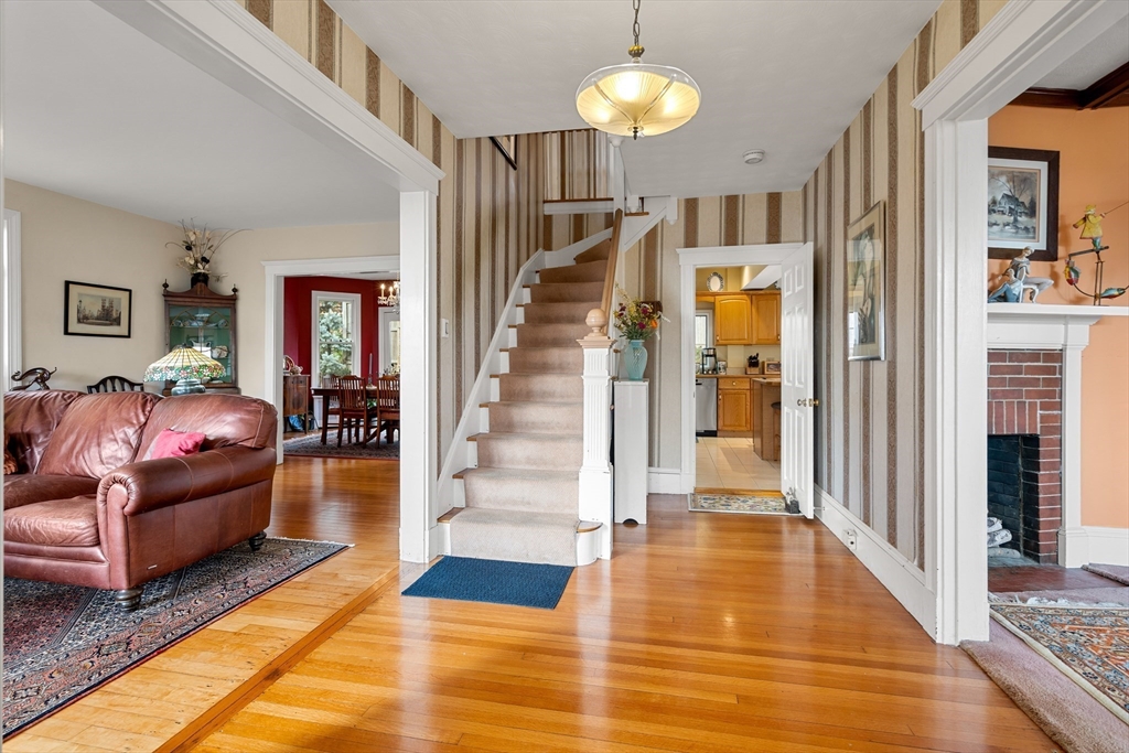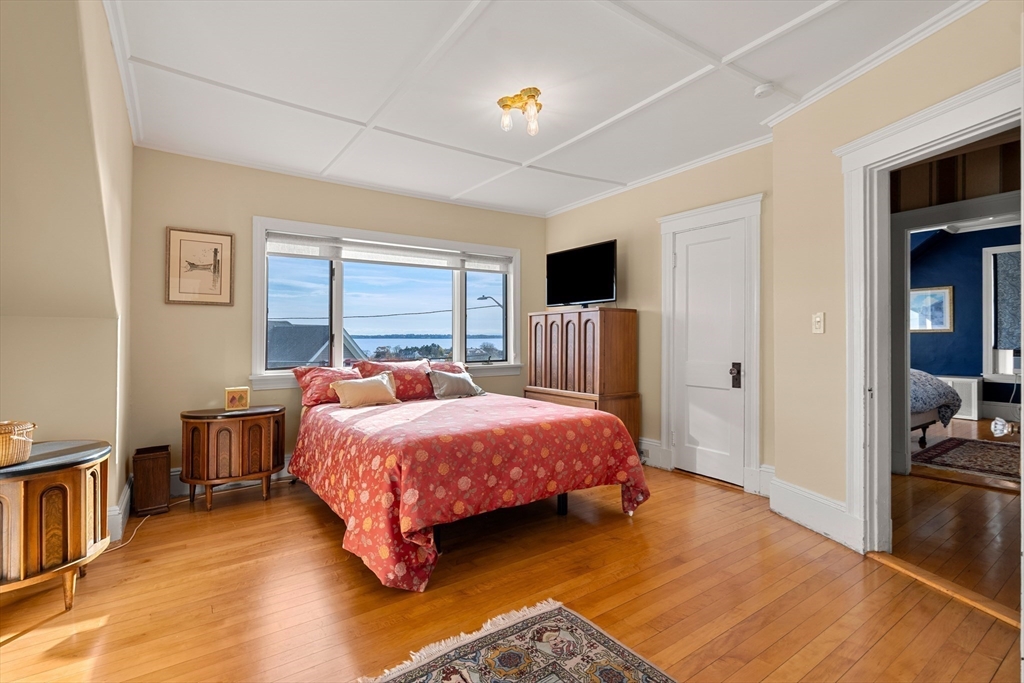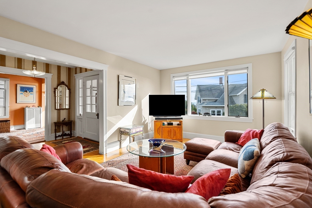 Perched on a hill overlooking Swampscott Harbor, the Atlantic Ocean, and the Boston skyline, 8 Ocean View Road offers classic New England charm with beautiful water views. This 1930s Colonial features 3 bedrooms and 2.5 baths, including a serene primary suite. The first floor boasts a living room and family room with fireplace both with ocean vistas—plus a formal dining room and kitchen with large island, both with access to a three-tiered deck, ideal for grilling and entertaining. Hardwood floors and period details evoke timeless elegance throughout. Additional features include a one-car garage with tandem parking for three more vehicles, solar panels for energy efficiency, and oil heat. Combining character, comfort, and captivating scenery, this coastal gem embodies the best of Swampscott seaside living. Showings start Saturday 11/15/25 at the open house 12-1:30.