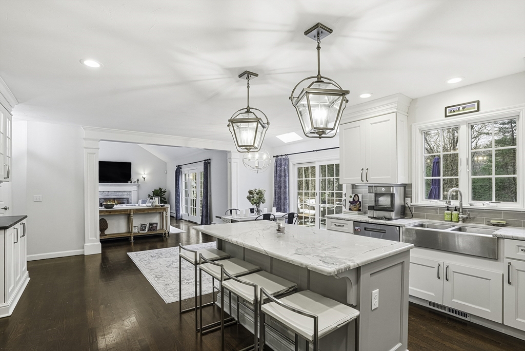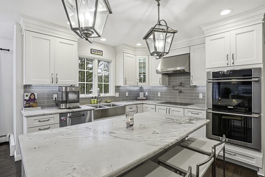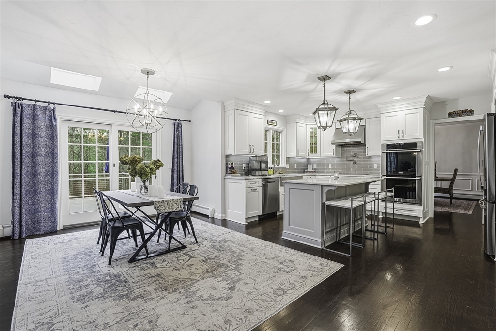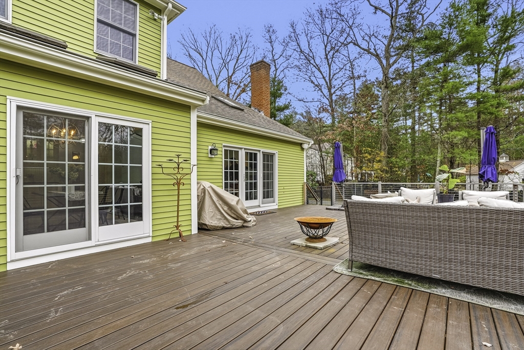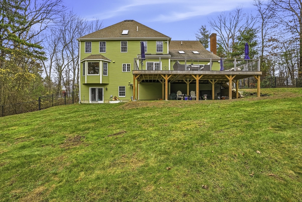 Welcome to this stunning 5-bed, 3-bath Colonial set on 1.62 acres on a cul-de-sac! Offering over 3,600 sq.ft. of living space plus an unfinished walk-out lower level, this home blends elegance & comfort. The gourmet kitchen features custom cabinetry, Calcutta quartzite counters, SS appliances, a double oven, & pot filler, opening to a vaulted family room w/ skylights, custom woodwork, & a cozy fireplace. The first floor also includes a formal dining room, living room, & private office. Upstairs, the spacious primary suite impresses w/ a sitting area, radiant-heated bathroom floor, marble vanity & dual walk-in closets. Enjoy outdoor living in the fenced yard w/ an expanded deck & sleek cable rail system. Freshly painted inside & out, w/ refinished hardwood floors, new garage doors & openers—this home is move-in ready & perfectly designed for modern living. Conveniently located under 5 miles to Whole Foods, Market Basket, Home Depot, & Rts. 495, 126 & 140! 7 miles to commuter rail.