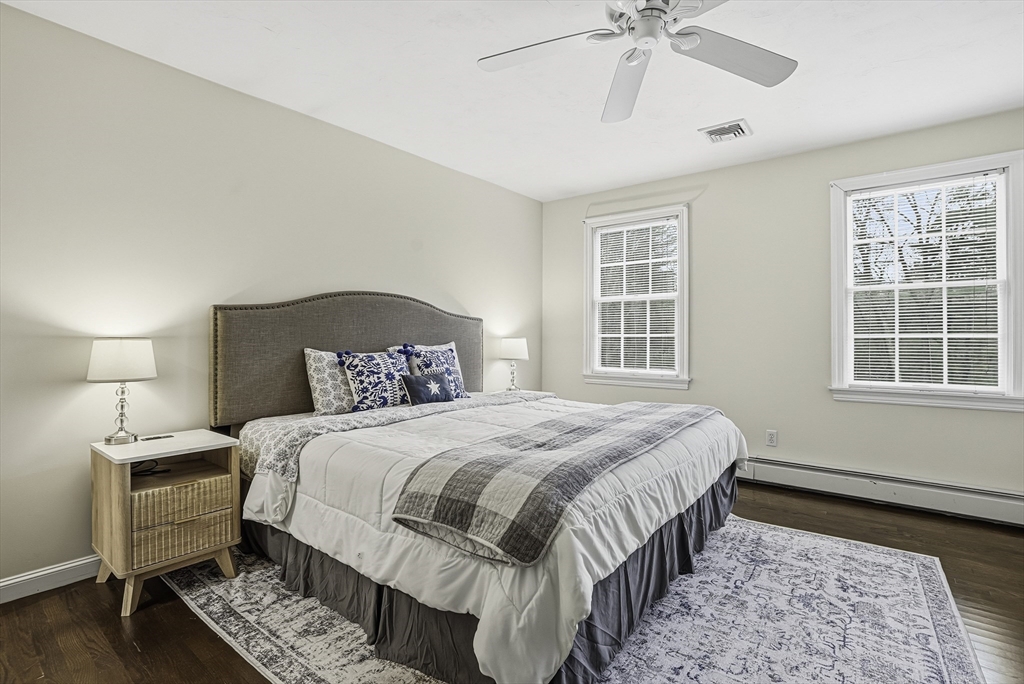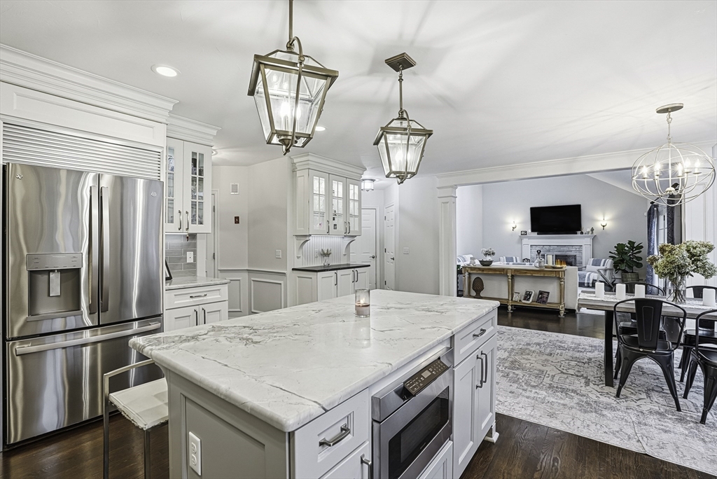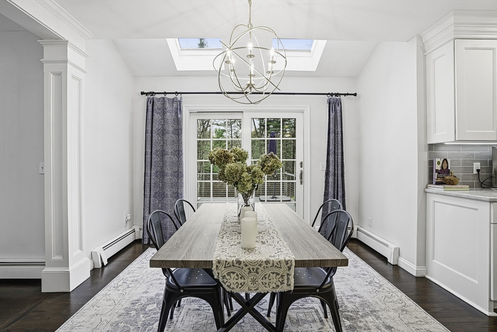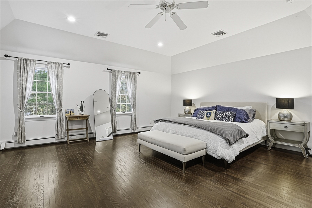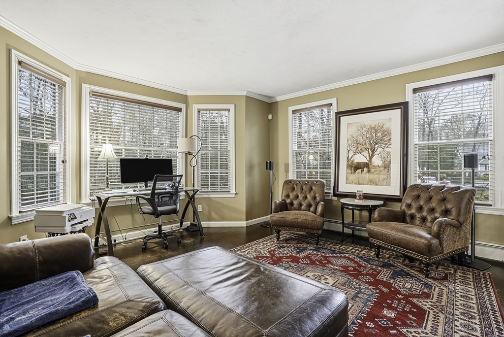 Welcome to this stunning 5-bed, 3-bath Colonial set on 1.62 acres on a cul-de-sac! Offering over 3,600 sq.ft. of living space plus an unfinished walk-out lower level, this home blends elegance & comfort. The gourmet kitchen features custom cabinetry, Calcutta quartzite counters, SS appliances, a double oven, & pot filler, opening to a vaulted family room w/ skylights, custom woodwork, & a cozy fireplace. The first floor also includes a formal dining room, living room, & private office. Upstairs, the spacious primary suite impresses w/ a sitting area, radiant-heated bathroom floor, marble vanity & dual walk-in closets. Enjoy outdoor living in the fenced yard w/ an expanded deck & sleek cable rail system. Freshly painted inside & out, w/ refinished hardwood floors, new garage doors & openers—this home is move-in ready & perfectly designed for modern living. Conveniently located under 5 miles to Whole Foods, Market Basket, Home Depot, & Rts. 495, 126 & 140! 7 miles to commuter rail.
