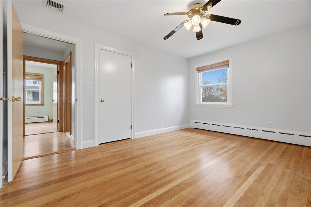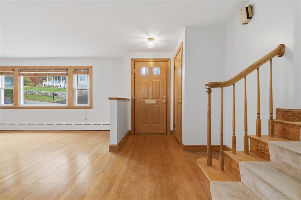 Rare opportunity in prime Stoneham location on private, tree lined lot. This home is waiting for your vision, with an open floor plan, lovely brick fireplace, and hardwoods throughout the first level, there are just three steps up to the bedrooms and updated full bath. A middle level with direct access to the garage offers a place for an at home office, gym, or game room, and a half bath. On the updated ground level you will find new windows, laminate flooring, recessed lighting, ample storage and a separate laundry room with soaking sink. Walk directly out to your private back patio surrounded in trees and gardens featuring 75 species of native plants lovingly cultivated for over a decade, attracting pollinators and birds, and providing color and interest in every season. Great backyard space as well. Newer, quality heating system. All of this in the highly desirable Bear Hill neighborhood in Stoneham, recently named one of the hottest neighborhoods on the north shore.