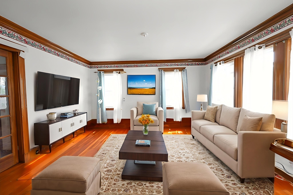 "DESIRABLE MILTON SECOND FLOOR APARTMENT! Discover serene living in this spacious 4BR unit on peaceful Verndale Road. Features include formal dining room, sun-filled living room with gleaming hardwoods, elegant built-in-China cabinet and chandelier. Generous eat-in kitchen boasts dishwasher, quality countertops, built-in microwave and electric stove. Three well-proportioned bedrooms offer comfortable living spaces. Fourth bedroom features convenient in-unit washer/dryer plus abundant windows offering abundant natural light. Private deck off smaller bedroom perfect for morning coffee while enjoying tranquil neighborhood views. Off-street parking (1) and shared yard access. Approximately 1,200 sq ft with hardwood throughout. Conveniently located just 0.8 miles to Mattapan Station (MBTA) and near Milton High School. Quick drive to local shopping, dining, and major highways. Tenant is responsible for gas, heat, electric. No pets/non-smoking. Welcome to your new home at 8 Verndale Road!