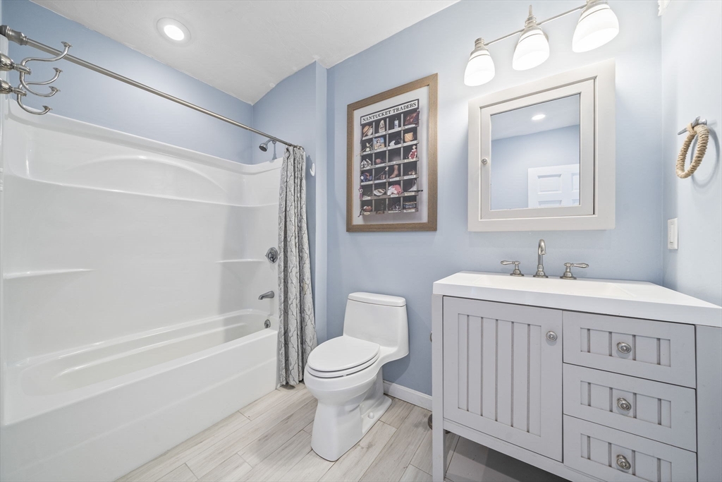 Welcome to this thoughtfully renovated Ranch style home in a highly sought after neighborhood. This home features a beautiful kitchen with 11ft island, granite countertops and stainless steel appliances that open to your new dining area and wood burning fireplaced living room! A perfect spot for entertaining or just relaxing in your new home. This residence features 3 bedrooms and 2 full baths making everyday living that much easier. The sunlit great room offers flexibility and ample space for hosting those larger gatherings. The lower level has nice sized windows and is perfect for a playroom, exercise space or home office? The fenced in backyard features extensive stone work (walls/patios) an inground pool to cool off on those hot summer days, gazebo, shed and garden area. Roof 2 yrs, heating system 3 yrs, new cooktop. A great commuter location with neighborhood access to schools and sports fields offering a unique opportunity to establish roots in this beautiful seaside town!