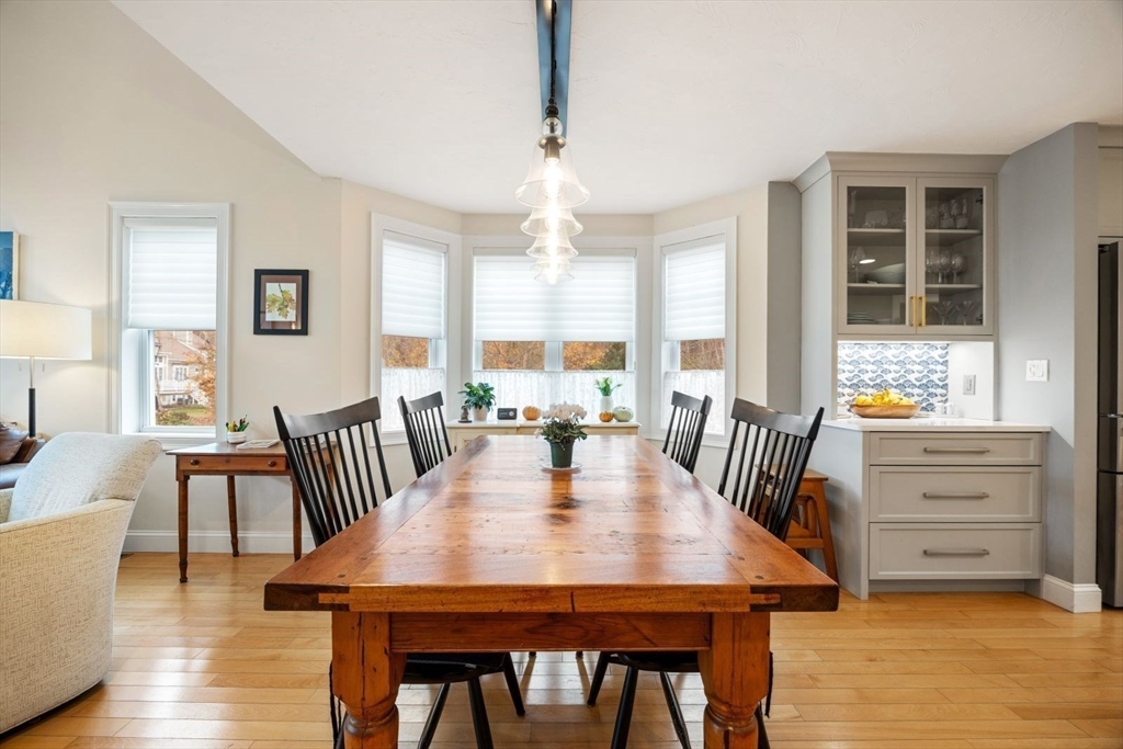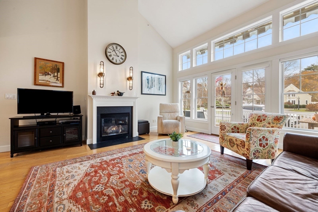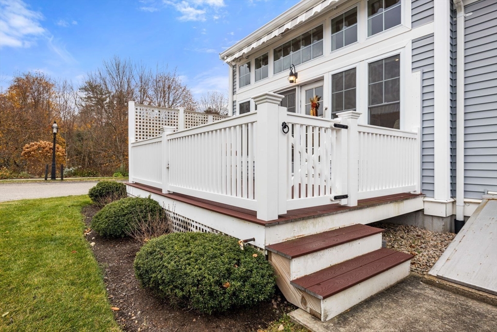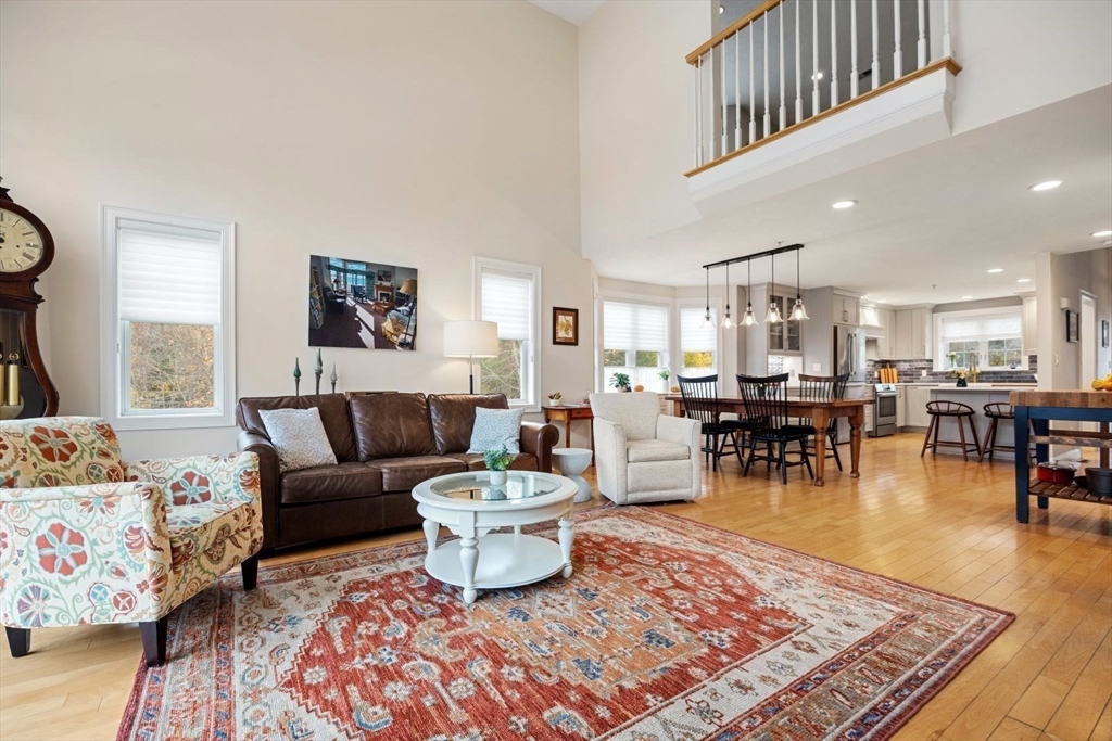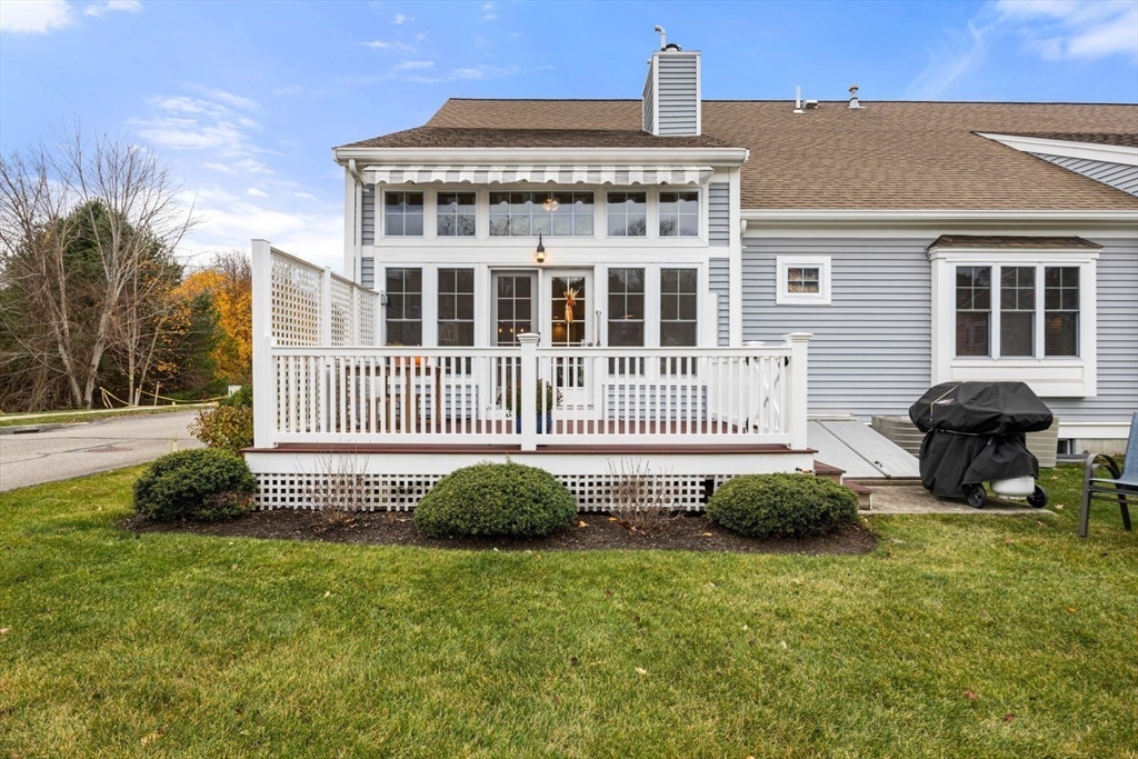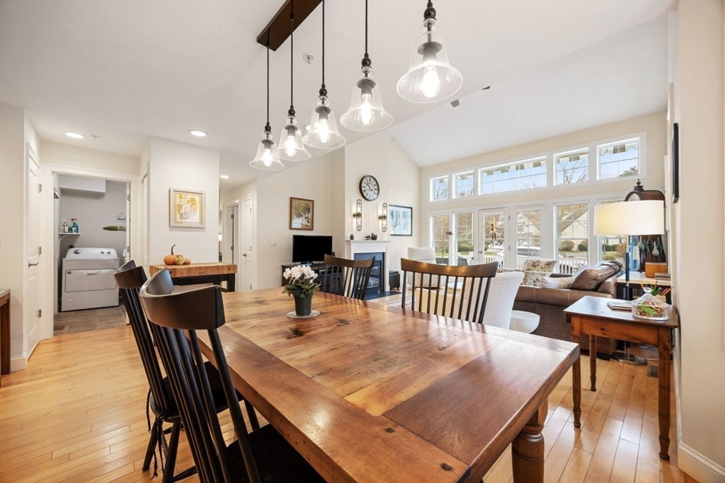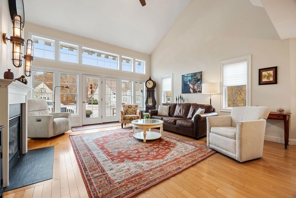 Welcome to The Maples! A beautifully maintained 55+ end unit offering exceptional natural light, space and comfort. The remodeled kitchen features custom cabinetry, a tiled backsplash, stone countertops and Bosch appliances including an induction stove and built-in microwave. The dining room provides ample space for entertaining, while the living room showcases vaulted ceilings that enhance the bright, open feel and a gas fireplace that creates a warm focal point for cooler evenings.The first-floor en-suite bedroom includes a spacious bath and walk-in closet. The main level also offers a guest bath and a combined laundry/pantry area. The second floor features an open loft ideal for a study, sitting area or hobby space, along with a large bedroom, walk-in closet and full bath. Additional highlights include a two-car garage with interior access and an upgraded Trex deck with quality railings and an awning. A wonderful opportunity in a sought-after 55+ community.