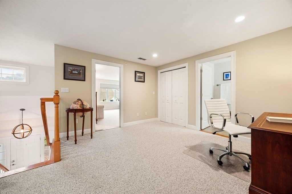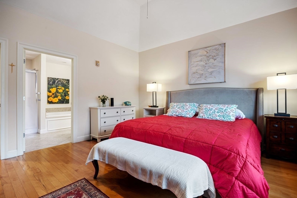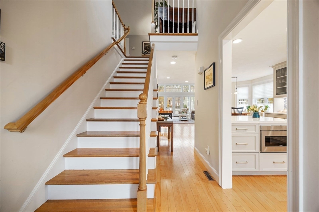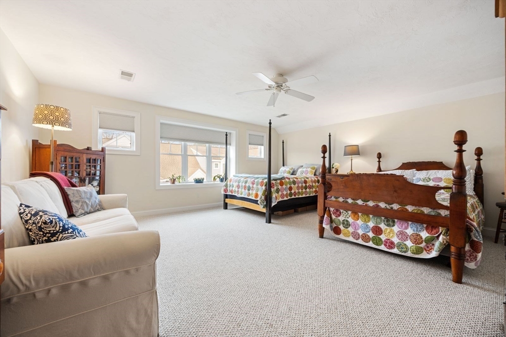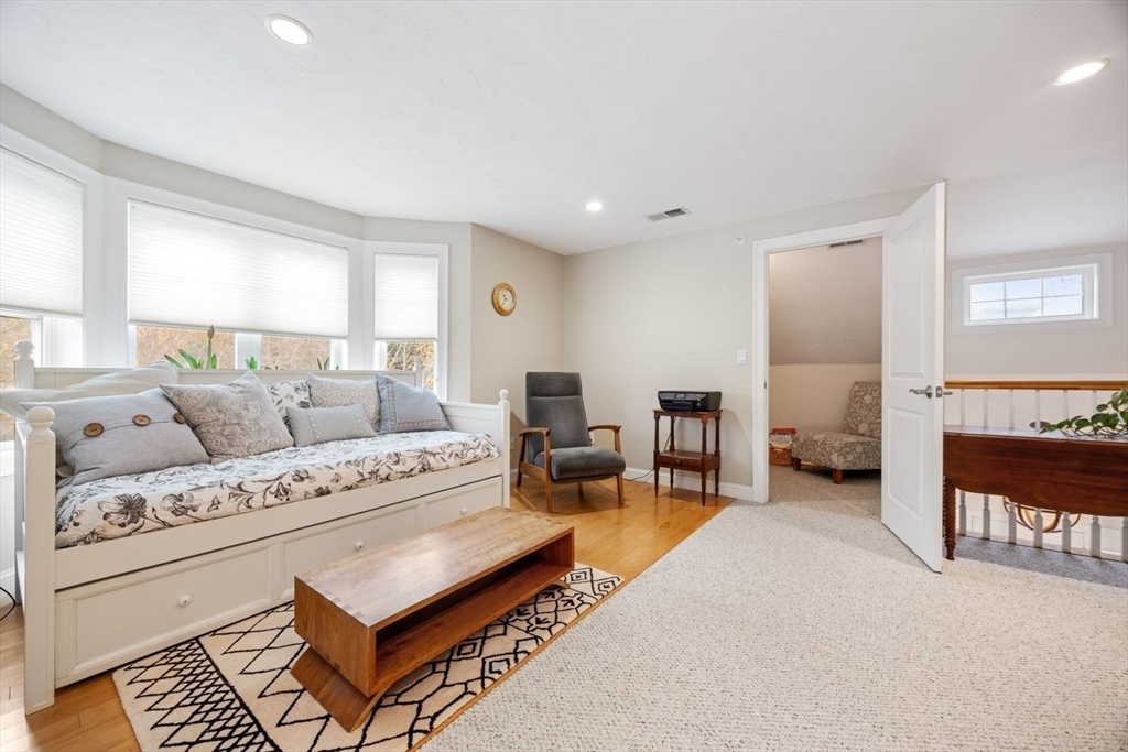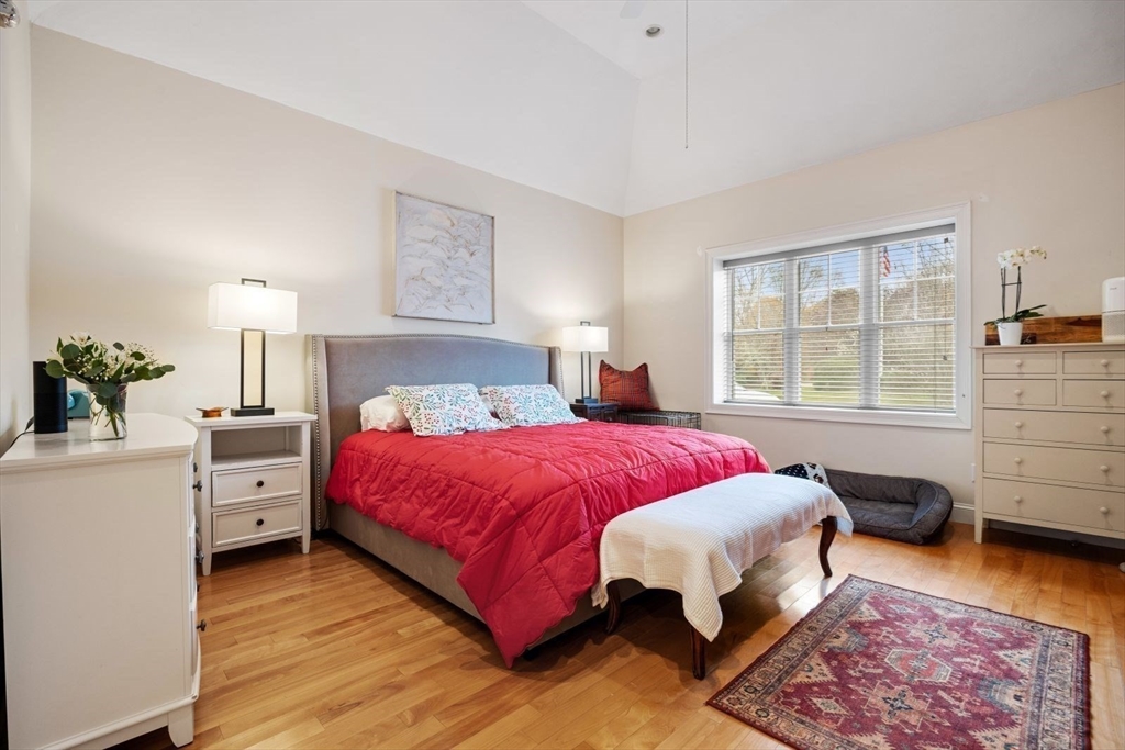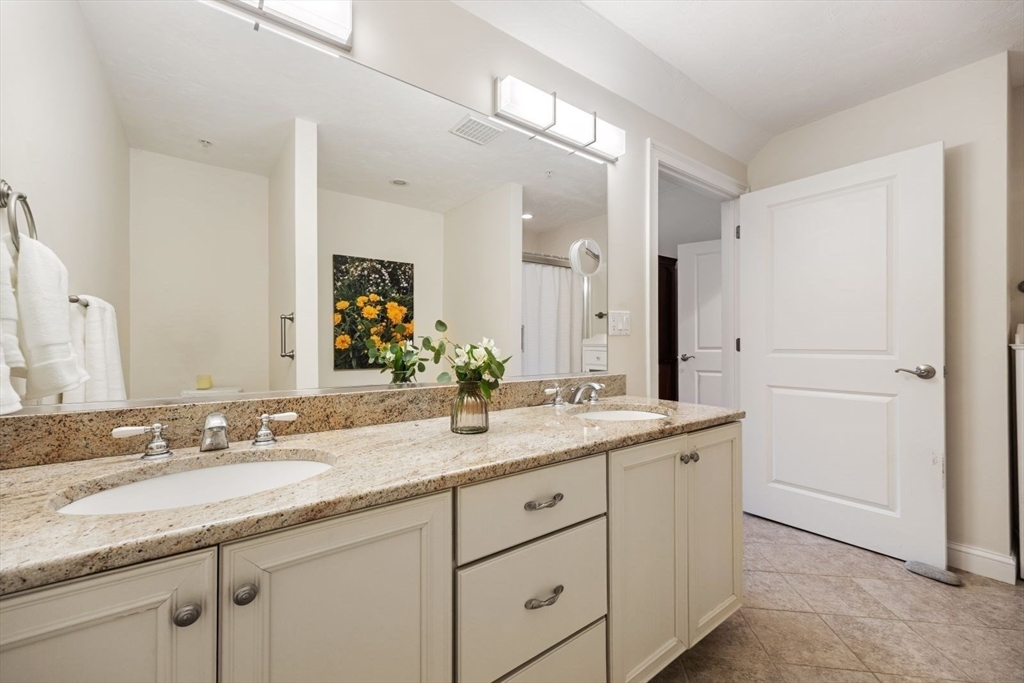 Welcome to The Maples! A beautifully maintained 55+ end unit offering exceptional natural light, space and comfort. The remodeled kitchen features custom cabinetry, a tiled backsplash, stone countertops and Bosch appliances including an induction stove and built-in microwave. The dining room provides ample space for entertaining, while the living room showcases vaulted ceilings that enhance the bright, open feel and a gas fireplace that creates a warm focal point for cooler evenings.The first-floor en-suite bedroom includes a spacious bath and walk-in closet. The main level also offers a guest bath and a combined laundry/pantry area. The second floor features an open loft ideal for a study, sitting area or hobby space, along with a large bedroom, walk-in closet and full bath. Additional highlights include a two-car garage with interior access and an upgraded Trex deck with quality railings and an awning. A wonderful opportunity in a sought-after 55+ community.
