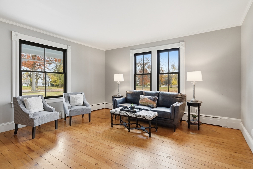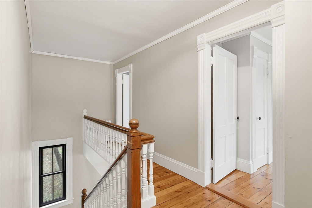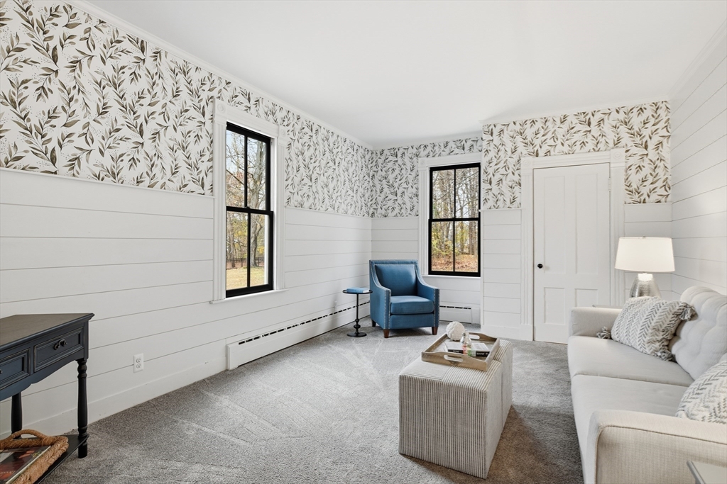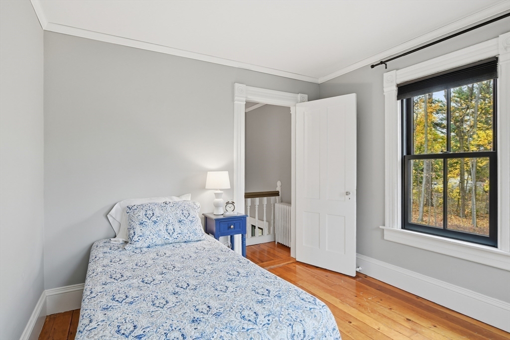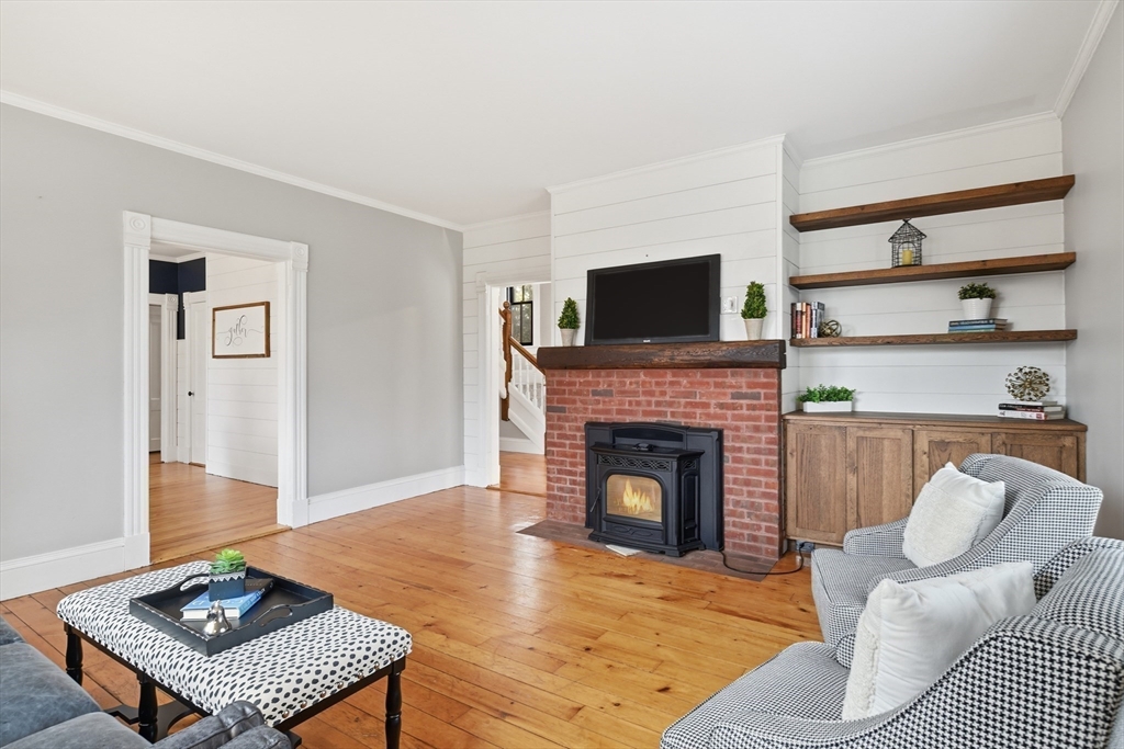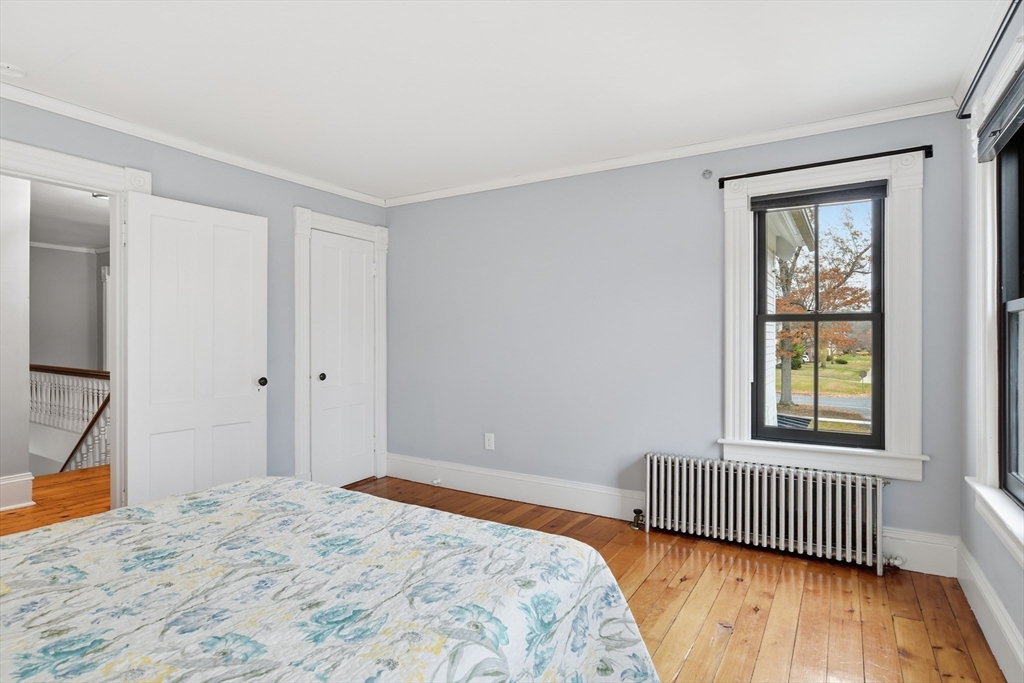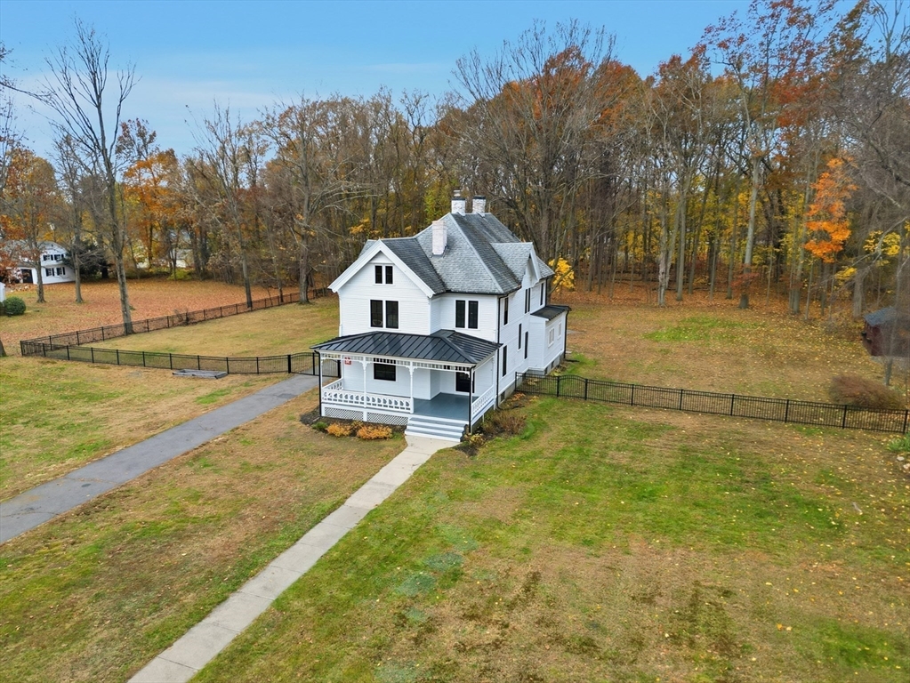 Situation on 2.3 acres, this updated 1893 Colonial Farm-house has a modern appeal that blends the new and the traditional so well. Large foyer opens to a beautiful front entry hall with a turned staircase. To the left a sun filled living room offers a fireplace w/ pellet stove and opens gracefully to the large dining room and family room. This home showcases spacious rooms, high ceilings, random-width wood floors, newer lighting, and striking black Marvin windows and doors from basement to attic, ship lap walls, and a new full bath on 1st floor to accomodate the 5th bedroom (family room). Excellent closet space, dressng room, and a walk-up attic. Rear staircase, leads down to the updated kitchen for late night snack or morning breakfast. Set on 2.3 private acres, Amish Shed and Kloter play scape leave ample land & lots of opportunity to create your own paradise. You will enjoy the privacy, a great view, tree lined streets, and easy access to I-91, walk to schools, library, & shopa.