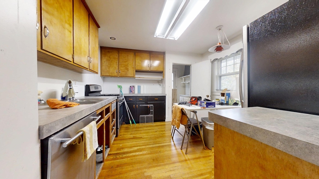 Discover a prime opportunity in highly sought-after East Watertown! This classic two-family home offers outstanding potential in an unbeatable location close to shops, restaurants, public transportation, and the new Arsenal Yards. Hardwood floors run throughout both units, adding timeless character and warmth. The first-floor unit features 2 bedrooms, 1 bathroom, and a comfortable layout ideal for owner-occupants or investors. The second-floor unit offers 3 bedrooms and 1 bathroom, plus access to a spacious walk-up attic—perfect for future expansion or creating additional living space (buyer to verify). 2-car garage provides valuable off-street parking. While the home needs updating, it presents a fantastic chance to customize, add value, and capitalize on East Watertown’s continued growth. Whether you're looking to invest, renovate, or create your dream multi-family, this property delivers exceptional potential in one of the area’s most convenient neighborhoods.