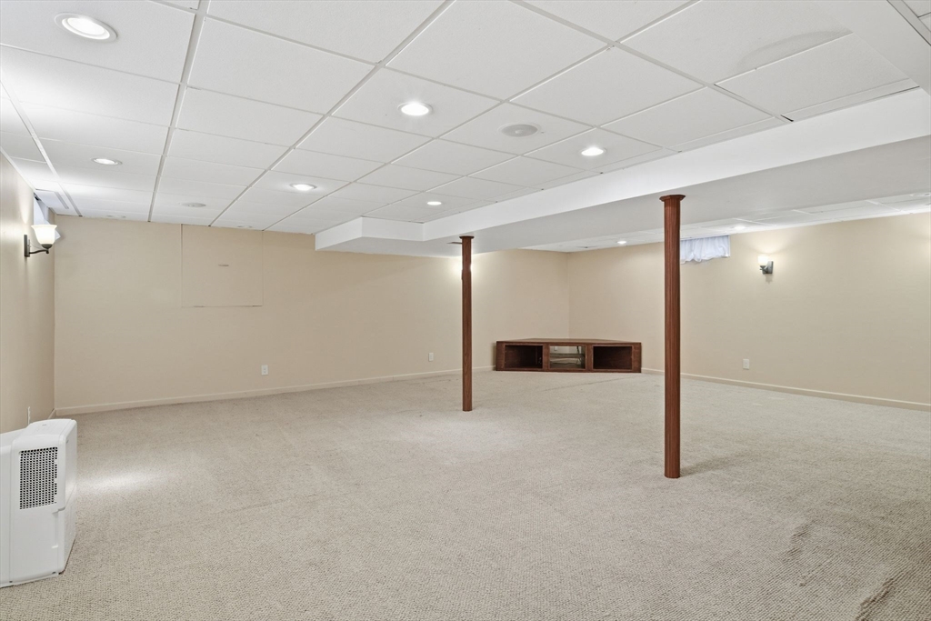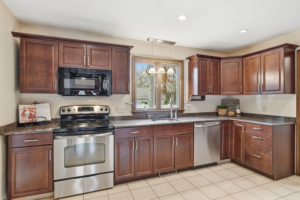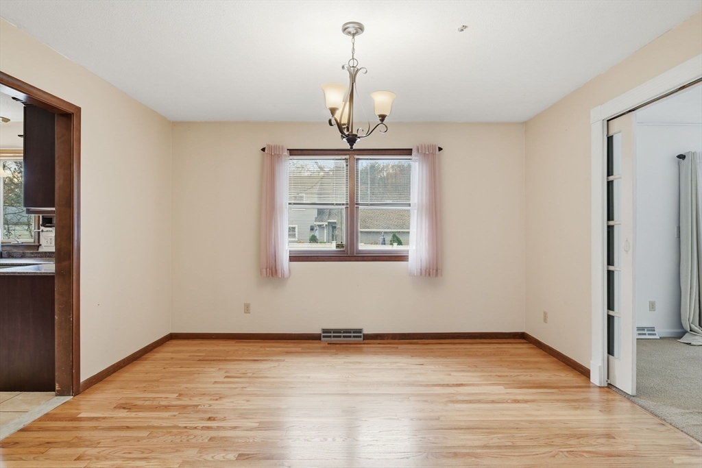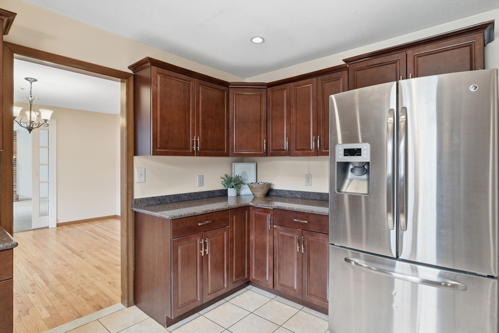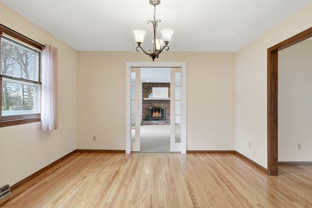 Welcome to an inviting ranch that offers easy one-floor living with warm newly refinished hardwoods, a sun-filled living room & open sight lines to a dining room ready for shared meals. The cozy family room has fireplace making every winter evening feel special- picture cocoa, stories & laughter as the holiday season approaches. Updated kitchen w/granite counters & stainless-steel appliances sits steps from laundry room for easy living. Bedroom wing features a peaceful primary suite w/wall of closets & tiled bath plus two additional bedrooms that share a full bath. Finished lower level nearly doubles the space- perfect for recreation, movie nights or cheering on your favorite team, complete w/bar area, office & exercise room. Outside, paver patio & level fenced yard invite relaxation w/distant golf course views. All this within walking distance to the elementary school, playground, pickleball courts, rec center & pool- small-town charm at its best. Settle in & start making memories.