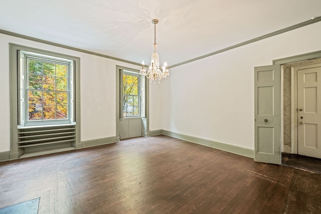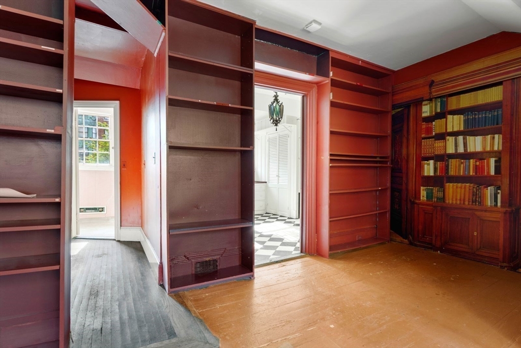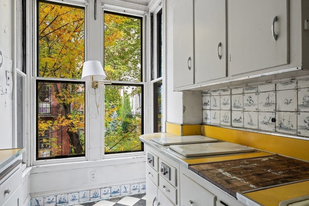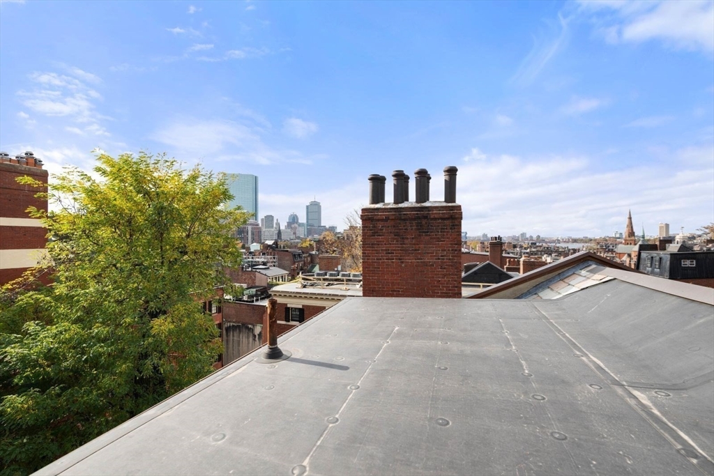 Incredible rare opportunity on upper Chestnut Street, this distinguished Beacon Hill residence is on the market for the first time in over 50 years allowing for personalization and restoration at a truly iconic location. Rich in period detail, the unit features 3 living levels, multiple fireplaces, box windows, and abundant natural light. Double etched-glass doors open to the gracious entry foyer and staircase which lead to beautifully proportioned rooms. The first level features living & dining rooms w/ marble fireplaces and Chestnut St views. The upper two floors offer 4+ bedrooms and 2 full baths and spectacular sunlight. The top floor features a full staircase to the roof with sweeping city views (a new slate and rubber roof in 2024 temporarily replaced the deck). Additional common storage in the bldg’s lower level. A timeless Beacon Hill gem ready for its next chapter.