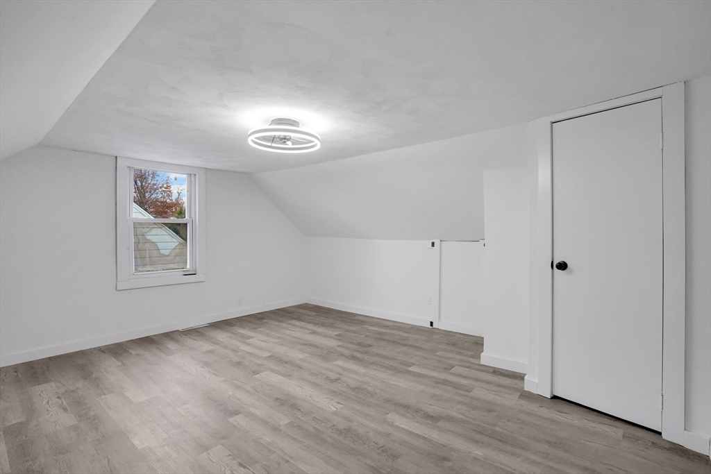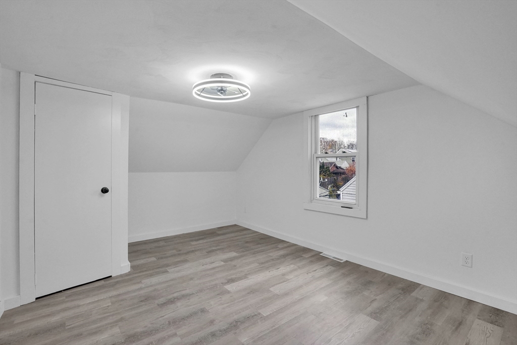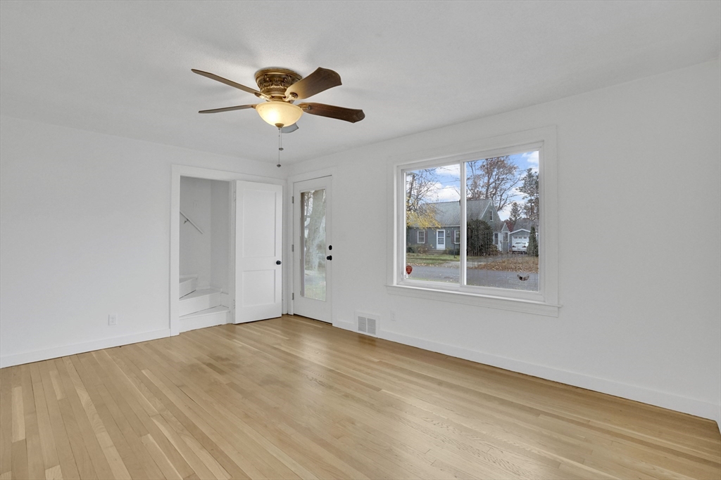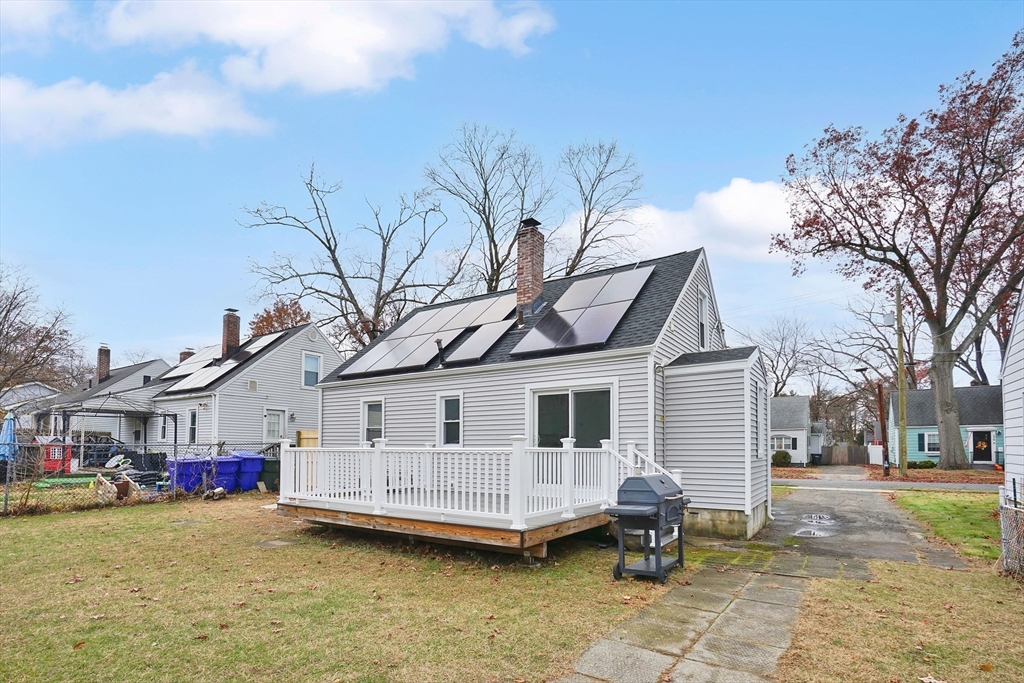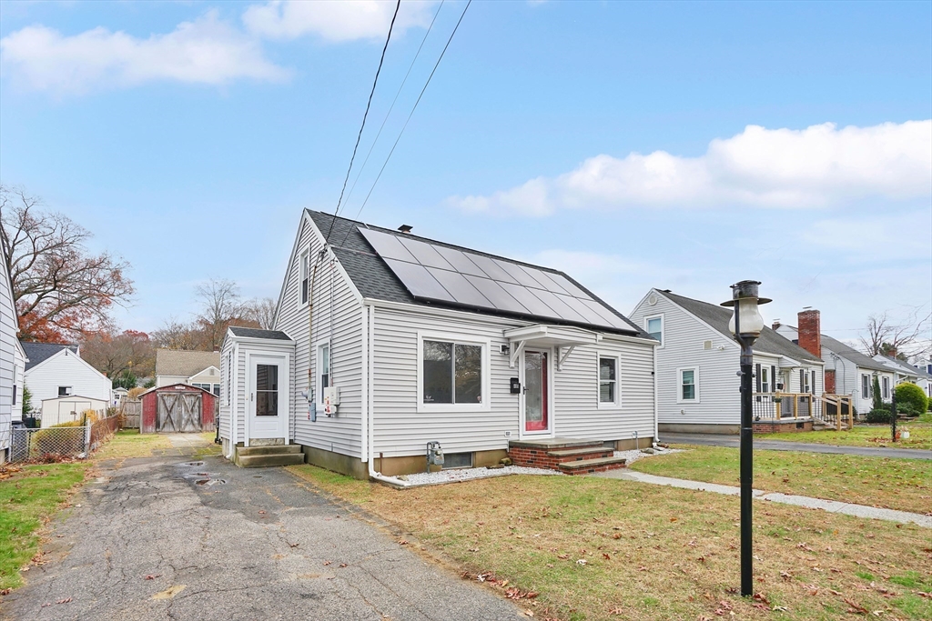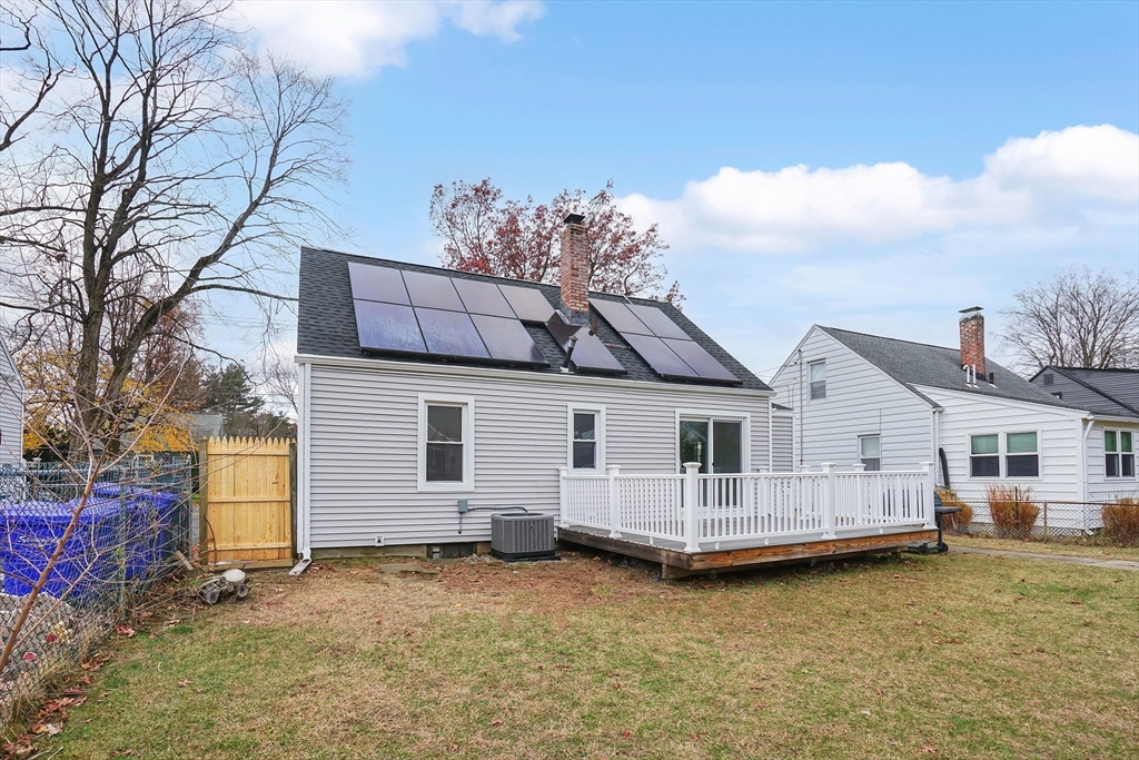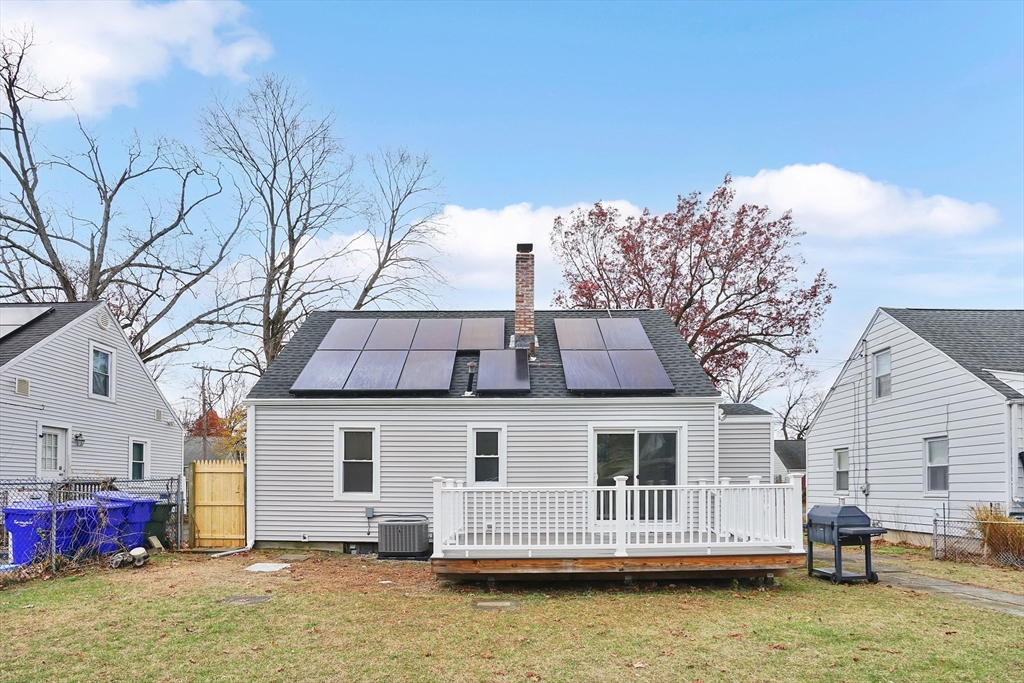 Welcome to this comfortable cape style home in a convenient area of East Forest Park, featuring 4 bedrooms and two baths. The interior has been painted and hardwood floors were refinished in the living room and 2 first floor bedrooms. The rest of the floors were updated with laminate. There has been a lot of updating-Newer siding, roof, slider to deck, front steps, chimney repointed, forced warm air gas heat and A/C. Deck leads to a partly fenced back yard. Solar panels installed October 2024 are leased from Everbright. Lease available for viewing.