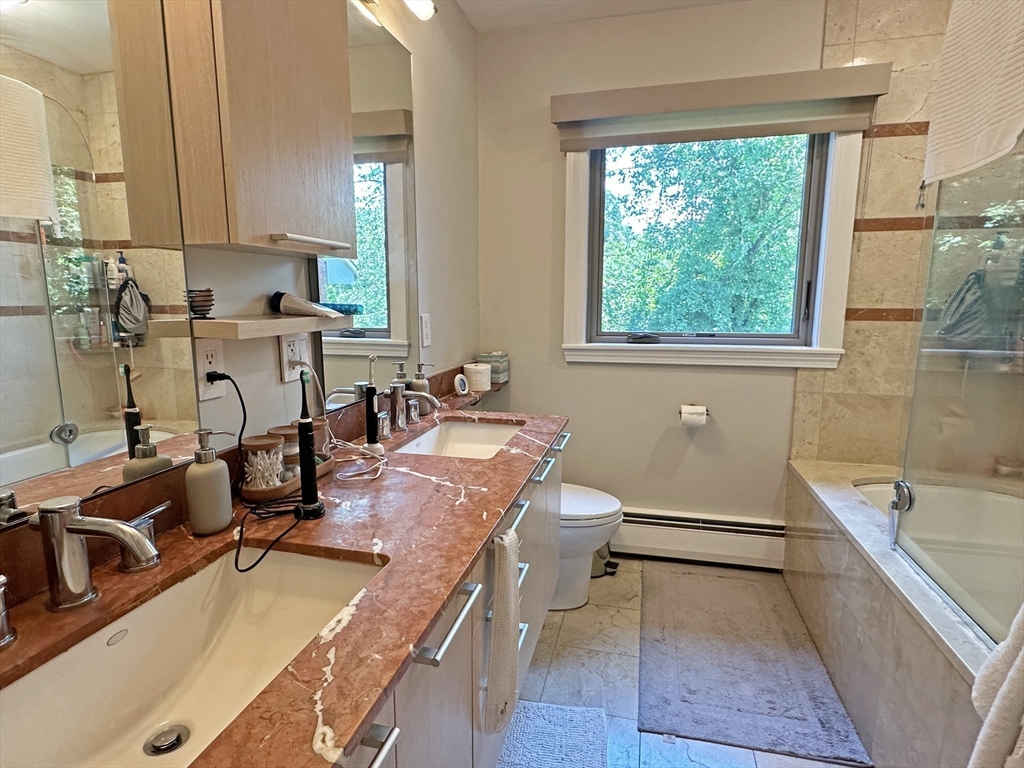 Very unique 1960s contemporary split level Ranch house in excellent location across from the Arboretum. This sun filled home is situated on a cul de sac & features 4 BRs, 3.5 BAs with additional sun room & finished basement space. Main level includes LR with lots of built in storage & ornamental FP which leads to formal DR. Nice eat-in-kitchen is fully applianced w/ gas range, double wall ovens, dishwasher & disposal. Lots of cabinet storage & counter space! Glass doors lead out to the spacious sun room. Just a few steps takes you to the 2nd level which offers an en-suite BR, another full BA w/ double sinks & 2 additional BRs. Top floor has another spacious en-suite BR w/ sunny private deck for lounging & morning coffee. Finished basement gives even more storage & opportunity for home gym or office. Lovely fenced yard w/ space for a garden. 2 car garage w/ additional driveway parking. Solid house all around! Pets considered on a case by case basis.