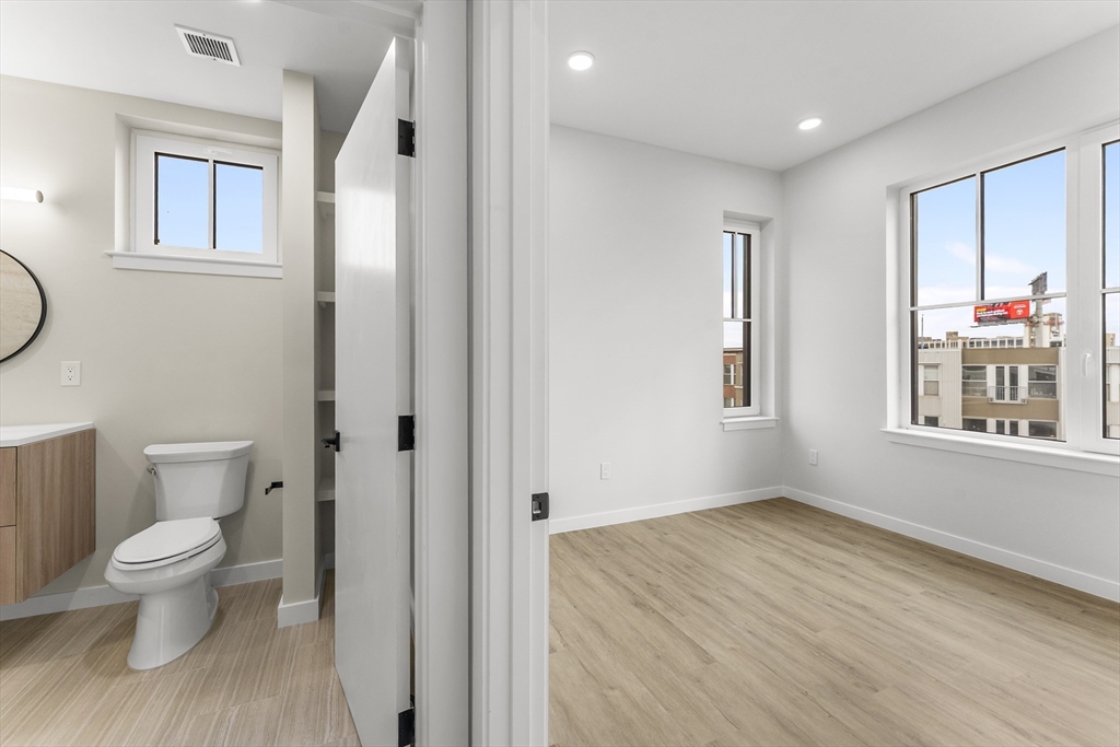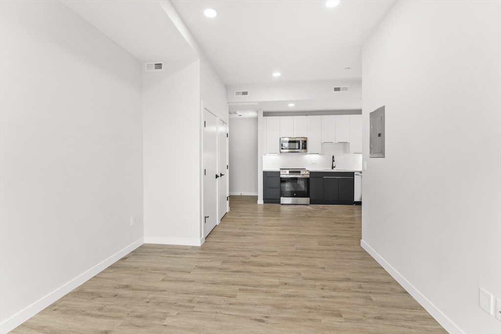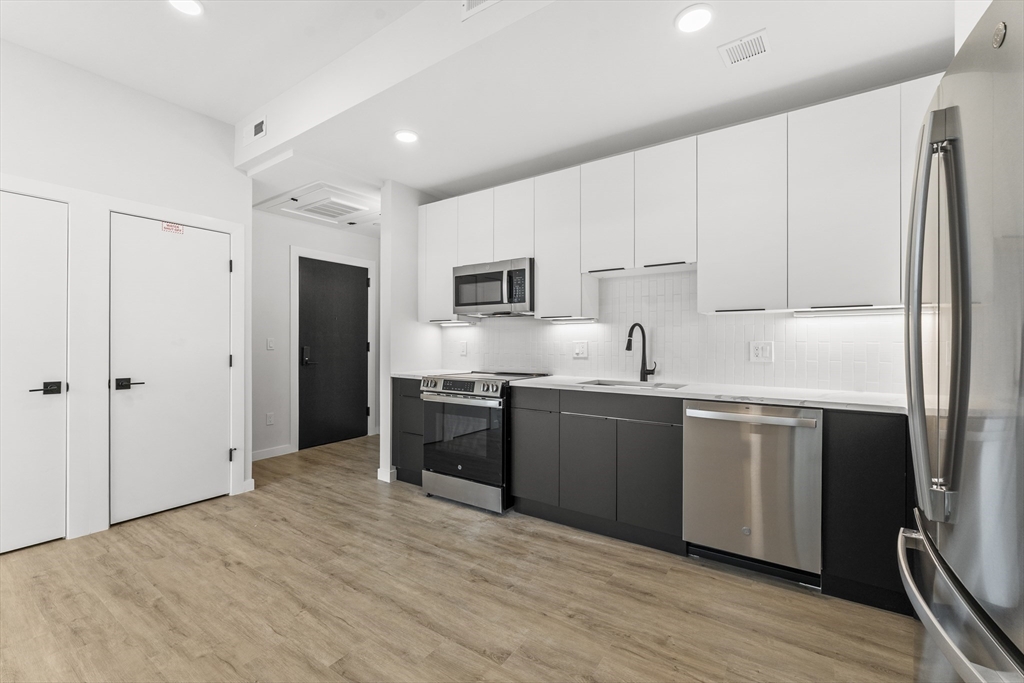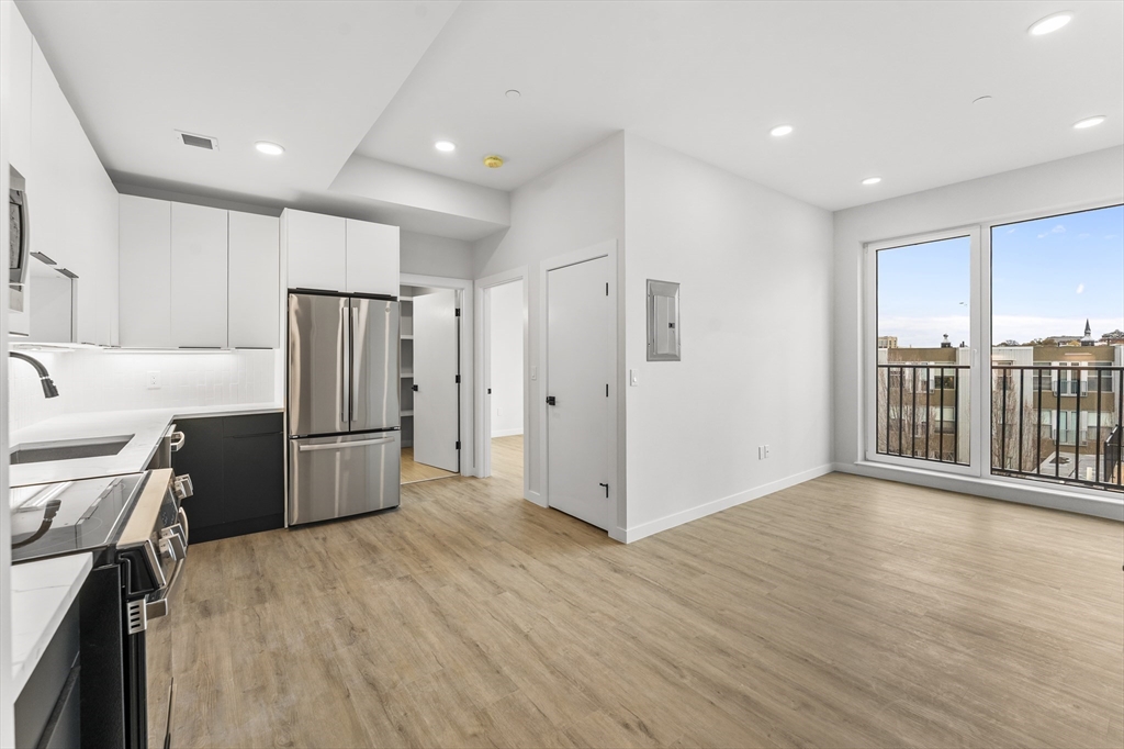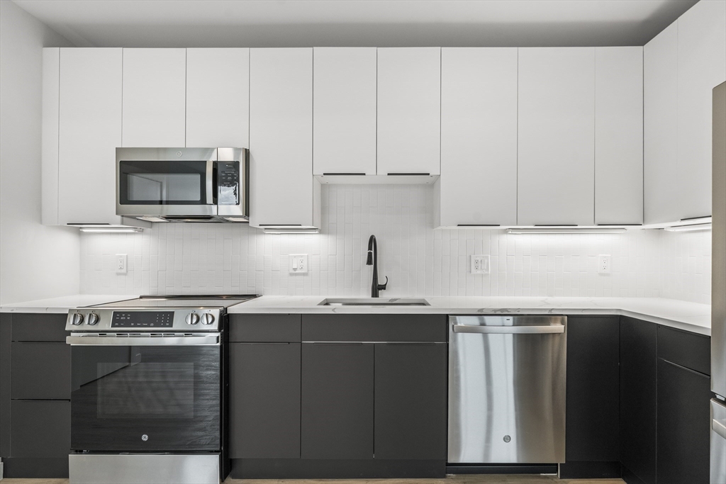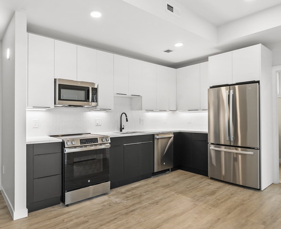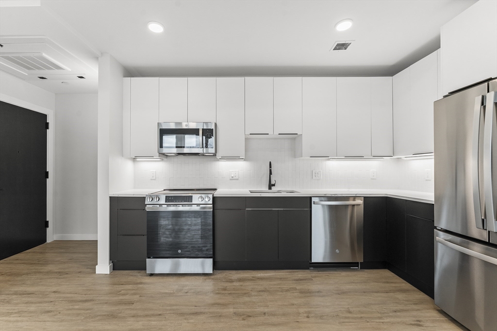 BEAUTIFUL FOURTH FLR ONE BEDROOM IN A STUNNING BRAND NEW CONSTRUCTION BUILDING WITH ELEVATOR. Rated a PARADISE WALK AND BIKE SCORE LOCATION... LESS THAN QUARTER MILE TO ORANGE LINE... BARELY OVER HALF A MILE TO THE GREEN LINE! CENTRAL A/C and MISERLY utility billls. Big 7 ft windows & wood look luxury wide plank flrs. Spacious feel w/ 10 ft clngs. Quartz Counter Lxry Kitchen w/ BREAKFAST ISLAND, all stnless appliances incl stove, refrigerator, dishwasher, microwave and IN UNIT WASHER / DRYER. Sliders to deck. LITERALLY AROUND THE CORNER FROM ASSEMBLY ROW... 5 minutes to Downtown Boston & North End. Building amenities incl a stunning contemporary lobby and an Inside Bike Room. Keyless Unit Entry. Video Security Front Dr Camera has Alpha Touch Camera w/ phone app . STUNNING ROOF DECK WITH VIEWS OF BOSTON. First and Last Month Rent to move in... ONE MONTH OF FREE RENT! Pets are allowed...addtnl rental fee may apply. Gorgeous Professionally Managed Prprty in an ULTRA MODERN NEW BUILDING
