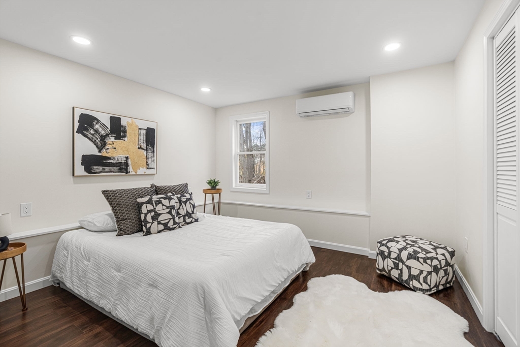 Welcome to 7 Old North Rd in desirable Hudson. This beautifully finished raised ranch blends classic charm with modern style. Step into a bright, open main level with vaulted ceilings, abundant natural light, and a cozy fireplace that anchors the space. The inviting kitchen features a center island, ideal for entertaining, with an elevated, upscale feel. Brand-new mini splits provide efficient heating and cooling. The fully finished lower level offers exceptional flexibility with a full bath featuring radiant heated floors, a designated laundry area, and a walkout to the backyard—perfect for extended living, a guest suite, home office, gym, or potential ADU/in-law setup (buyer to verify). Enjoy outdoor living on the new deck overlooking a spacious yard. Moments from the Assabet River Rail Trail, 495, and vibrant Downtown Hudson with its shops, cafés, and restaurants. A rare turnkey gem—just unpack and enjoy.