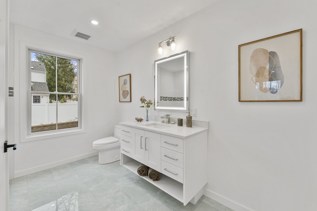 Experience refined new construction living in this sun-drenched 5-bedroom, all en suite, 5.5-bath home offering over 5,100 sq ft of thoughtfully designed living space. The main level is anchored by a stunning chef’s kitchen w/ high-end finishes, an expansive island, walk-in pantry & bright dining area, opening seamlessly to a fireplaced family room with large sliders to a patio & landscaped backyard—ideal for indoor-outdoor entertaining. Formal living & dining rooms, a private home office & a powder room complete this level. The second floor features a luxurious primary suite, spa-like bath with double vanity, oversized shower & a walk-in closet, along with three additional en suite bedrooms and a well-appointed laundry room. A sun-lit third-floor bonus space w/ a full en suite bath offers flexibility for a playroom, media room, guest suite or home office. Hill Street is an exceptional blend of craftsmanship, scale, and natural light—setting a new standard for modern living in Needham