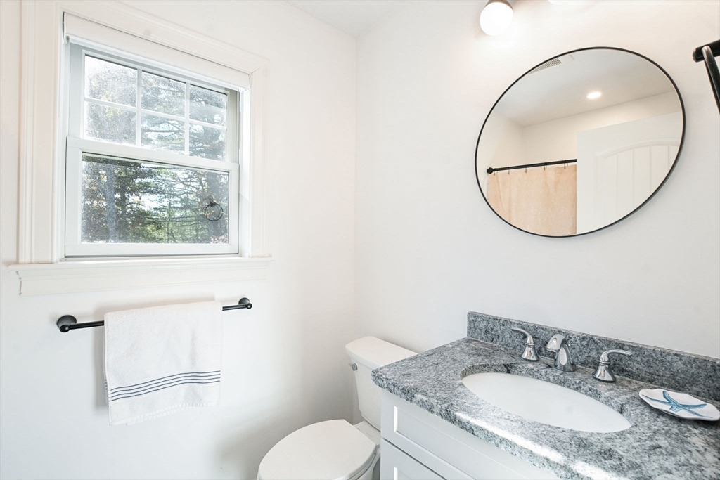 Set on a quiet dead-end street in Locustfield Estates, this 2021 Cape offers an easy, flexible layout with a first-floor primary suite and two bedrooms plus a den upstairs. The open main level features a gas fireplace and a granite kitchen with a center island and counter-height seating. The finished lower level adds an office and game room for extra space to work or unwind. Owned Tesla solar panels with battery backup keep essentials running during outages and an EV charger to boot! Outside, enjoy a fenced, level yard with a cozy fire pit, perfect for roasting s'mores! An attached one-car garage and an HOA fee of only $345 per year add convenience. Just 3.5 miles to Chapoquoit Beach or Falmouth's Main Street, and a stone's throw from Jack in the Beanstalk Farm Stand and the future home of Falmouth's YMCA, this home offers amazing location, efficiency, and room to spread out!