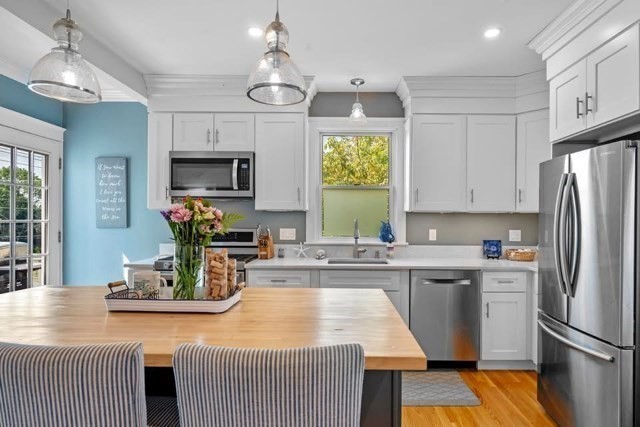 Furnished rental in prime Beverly location. Available Jan. 1, 2026.. BEAUTIFULLY renovated year-round condo across from Gillis Beach. What a great way to spend your winter in this peaceful oasis while you figure out your next move, relocate to this area, spend time with family, or renovate a home. New renovations in this beautiful condo include hardwood floors, center island kitchen, open concept living space w/ AMAZING views of the sunsets over the river. . This small community has access to launch a paddle board or kayak. This second floor furnished 5 room, 2 bedroom, 1 bath condo offers an outdoor deck with water views and BBQ grill. Plenty of options for in home office workstation. Minutes' walk to the train station, restaurants and pubs. No pets, nonsmokers. In unit laundry included.