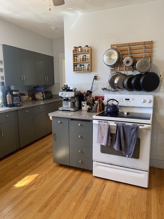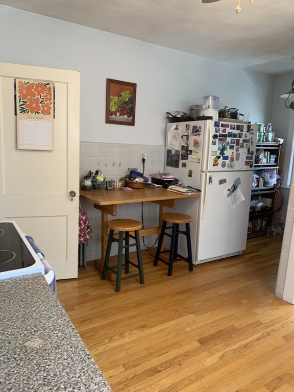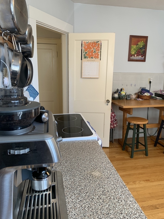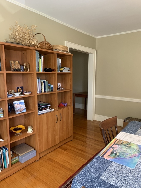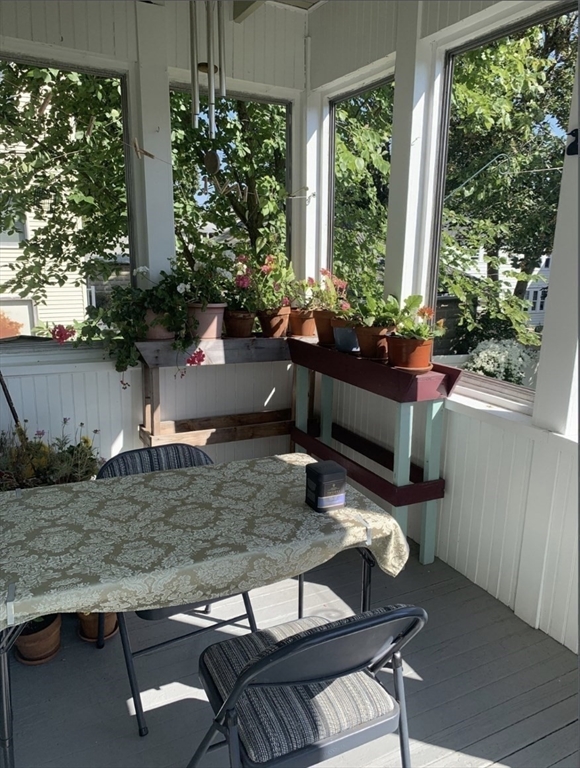 First floor unit with 2 bedrooms and sunroom. Spacious rooms. Living room has built-in bookshelf and dining room has built in hutch. Porch in rear of building. Space to garden or plant tomatoes. Close to bus line and close to Grove Street Park and Payson Park. Also close to some major routes.